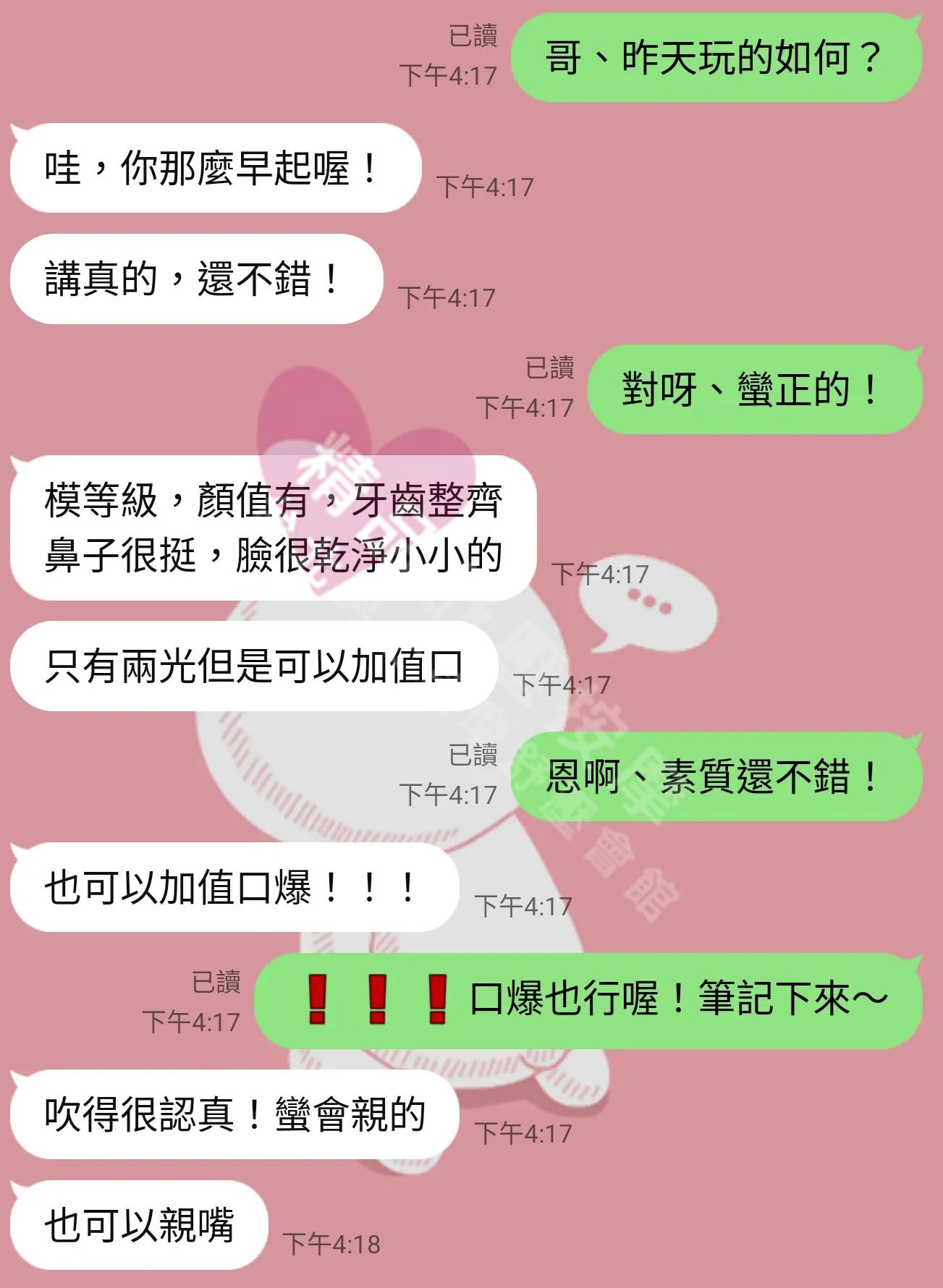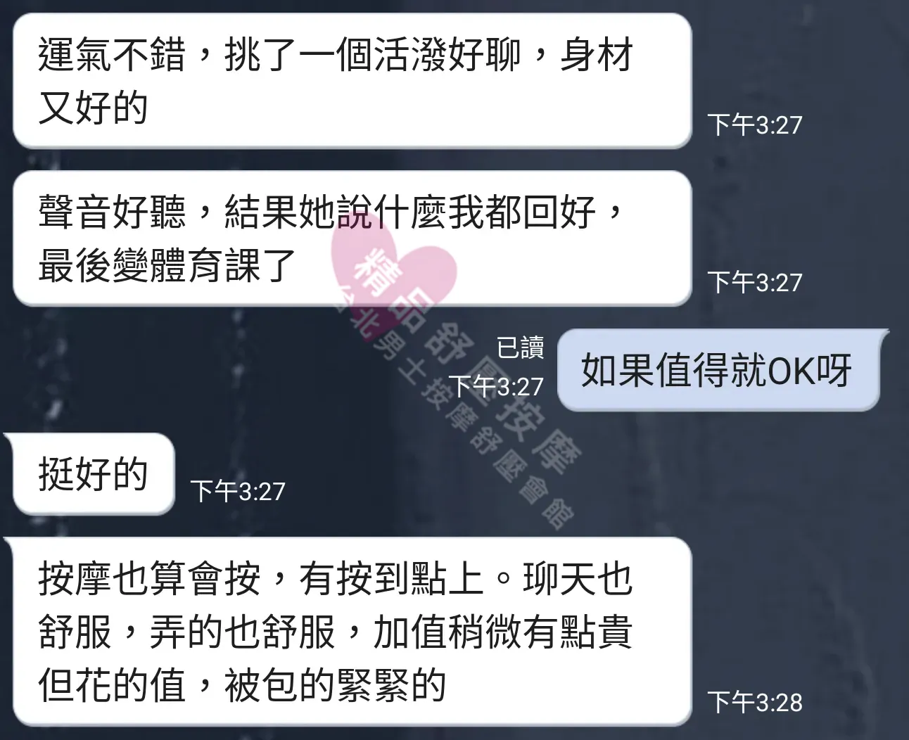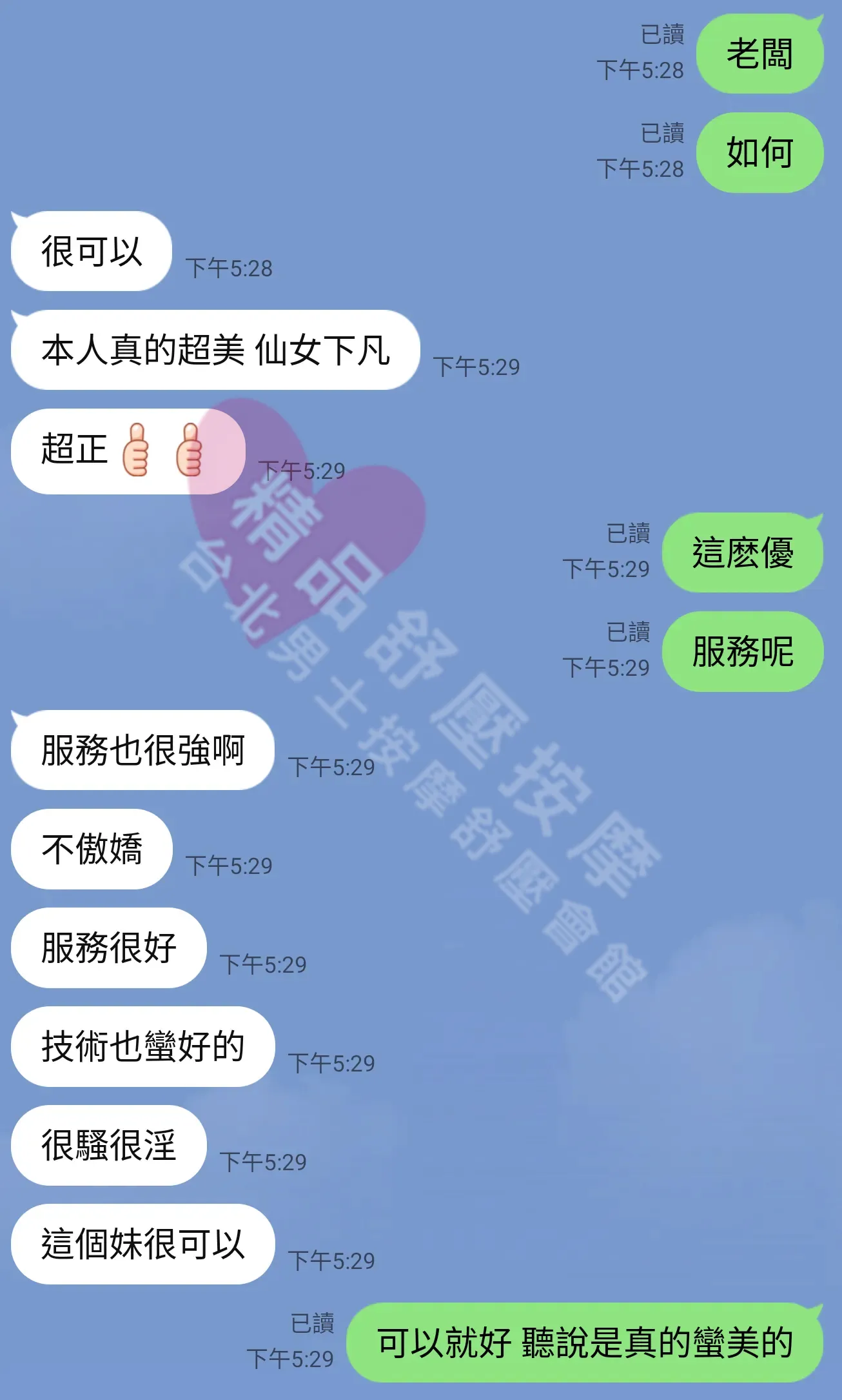 美容師都很有禮貌,先幫你背部按摩聊聊天,前戲會開始調情輕功,再來就是重點部位的加強。如果預算,也可以跟美容師聊聊加值服務,放心問都有機會。精品舒壓期待每位客人每次來舒壓都有個Happy Ending!