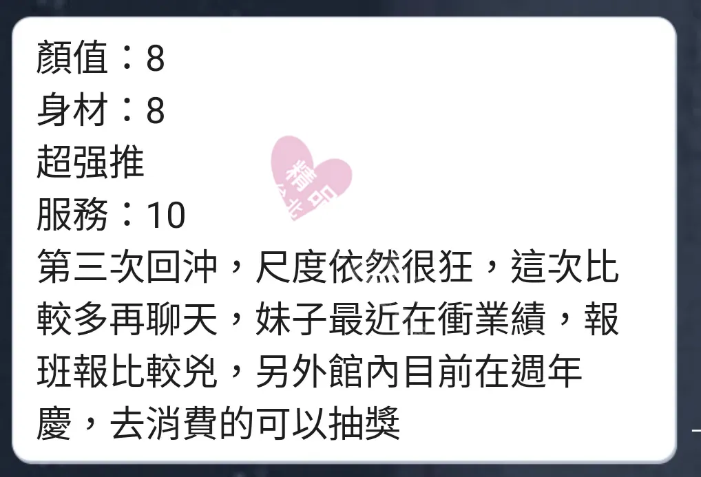 美容師都很有禮貌,先幫你背部按摩聊聊天,前戲會開始調情輕功,再來就是重點部位的加強。如果預算,也可以跟美容師聊聊加值服務,放心問都有機會。精品舒壓期待每位客人每次來舒壓都有個Happy Ending!
