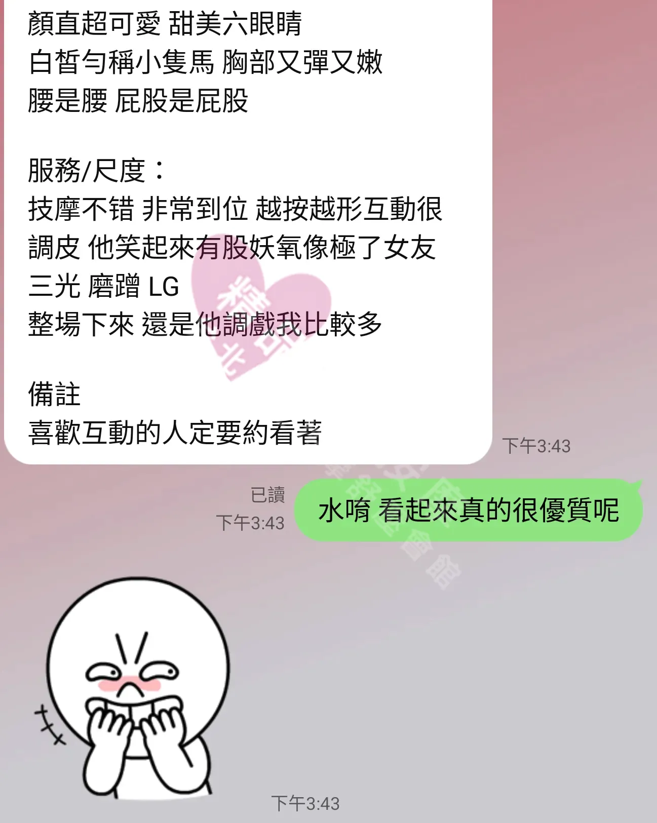 美容師都很有禮貌,先幫你背部按摩聊聊天,前戲會開始調情輕功,再來就是重點部位的加強。如果預算,也可以跟美容師聊聊加值服務,放心問都有機會。精品舒壓期待每位客人每次來舒壓都有個Happy Ending!