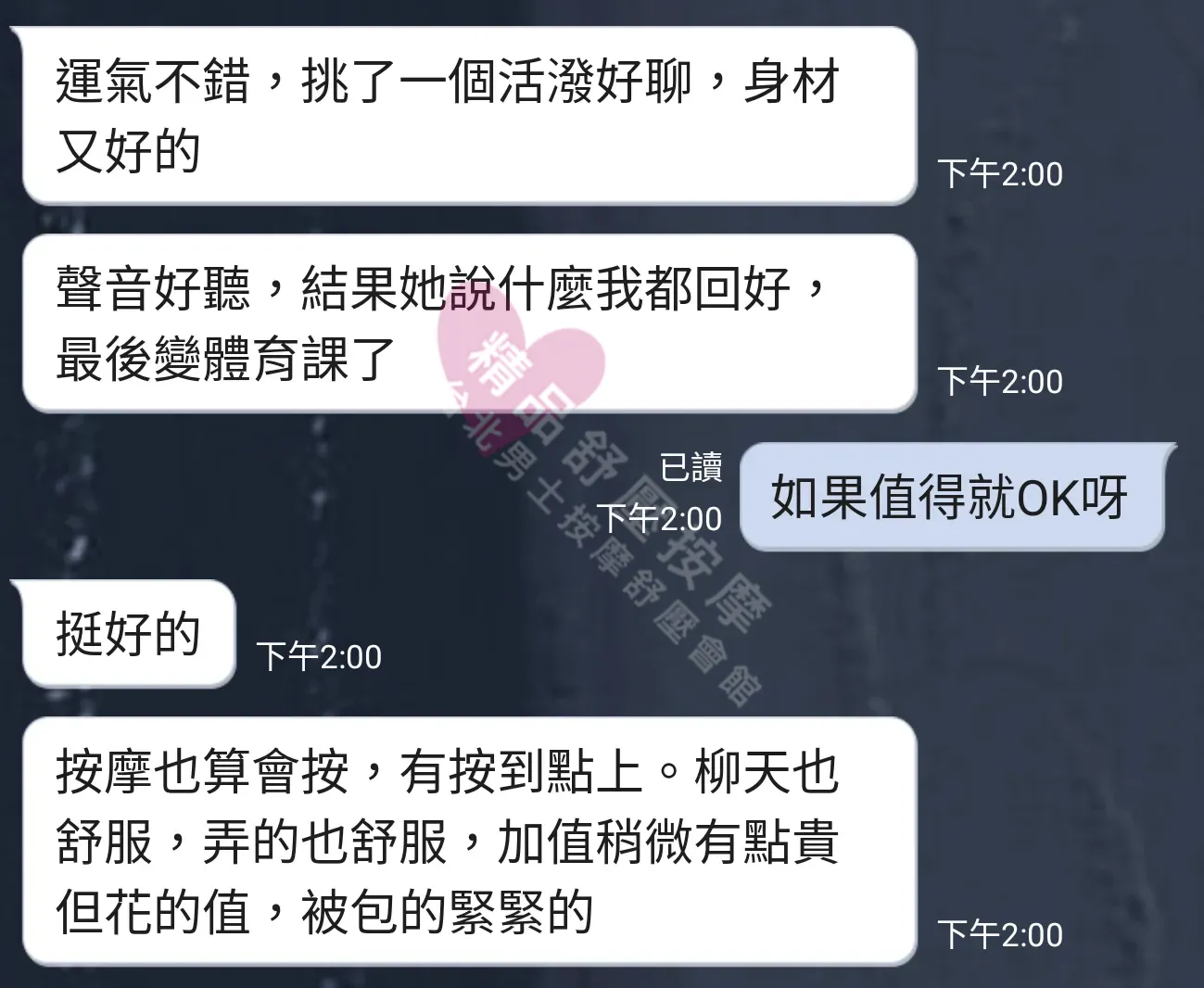 美容師都很有禮貌,先幫你背部按摩聊聊天,前戲會開始調情輕功,再來就是重點部位的加強。如果預算,也可以跟美容師聊聊加值服務,放心問都有機會。精品舒壓期待每位客人每次來舒壓都有個Happy Ending!