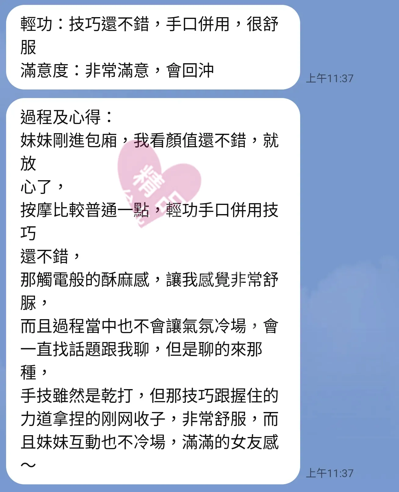美容師都很有禮貌,先幫你背部按摩聊聊天,前戲會開始調情輕功,再來就是重點部位的加強。如果預算,也可以跟美容師聊聊加值服務,放心問都有機會。精品舒壓期待每位客人每次來舒壓都有個Happy Ending!