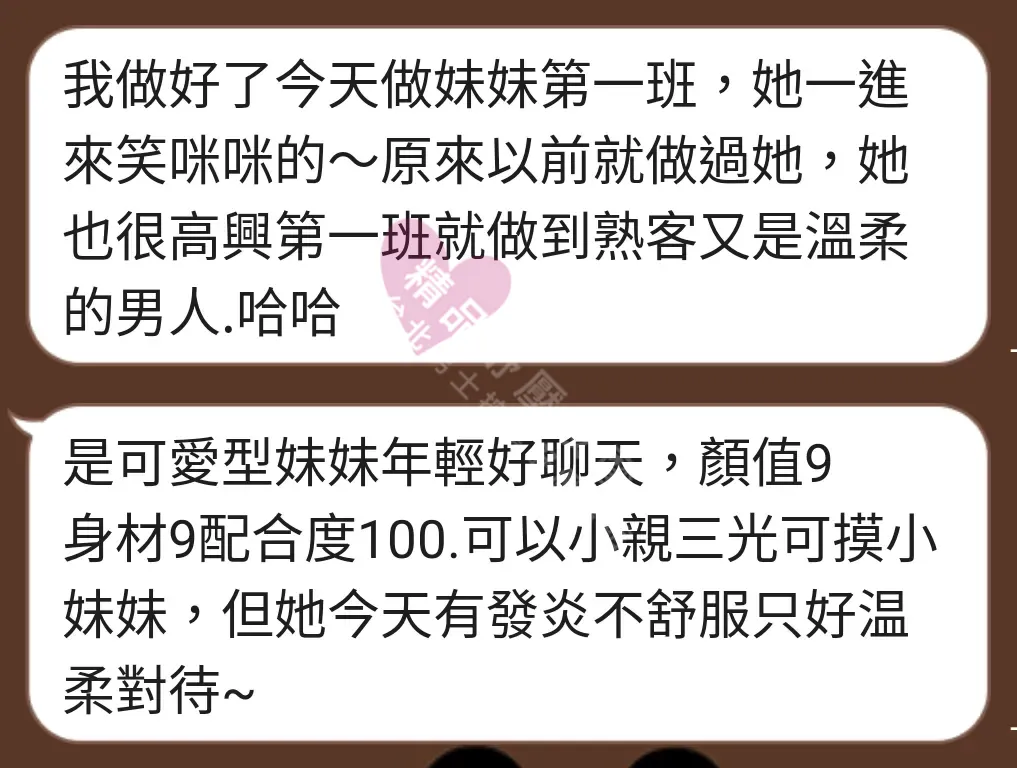 美容師都很有禮貌,先幫你背部按摩聊聊天,前戲會開始調情輕功,再來就是重點部位的加強。如果預算,也可以跟美容師聊聊加值服務,放心問都有機會。精品舒壓期待每位客人每次來舒壓都有個Happy Ending!