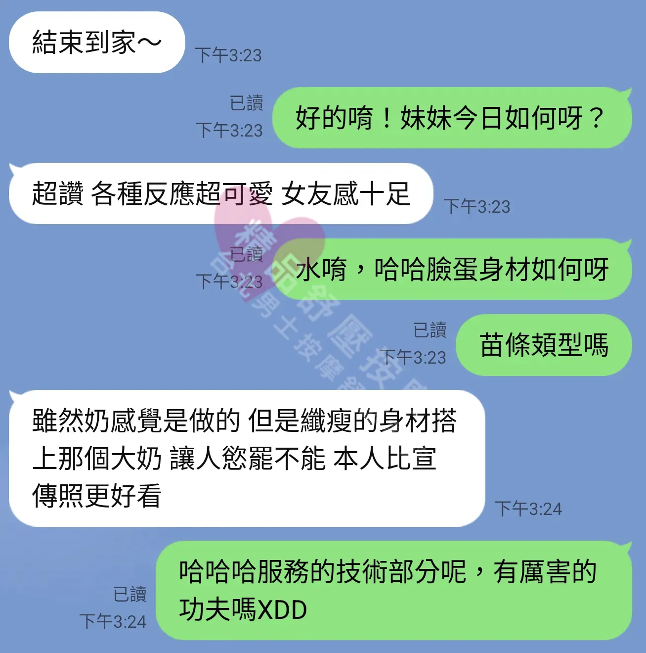 美容師都很有禮貌,先幫你背部按摩聊聊天,前戲會開始調情輕功,再來就是重點部位的加強。如果預算,也可以跟美容師聊聊加值服務,放心問都有機會。精品舒壓期待每位客人每次來舒壓都有個Happy Ending!
