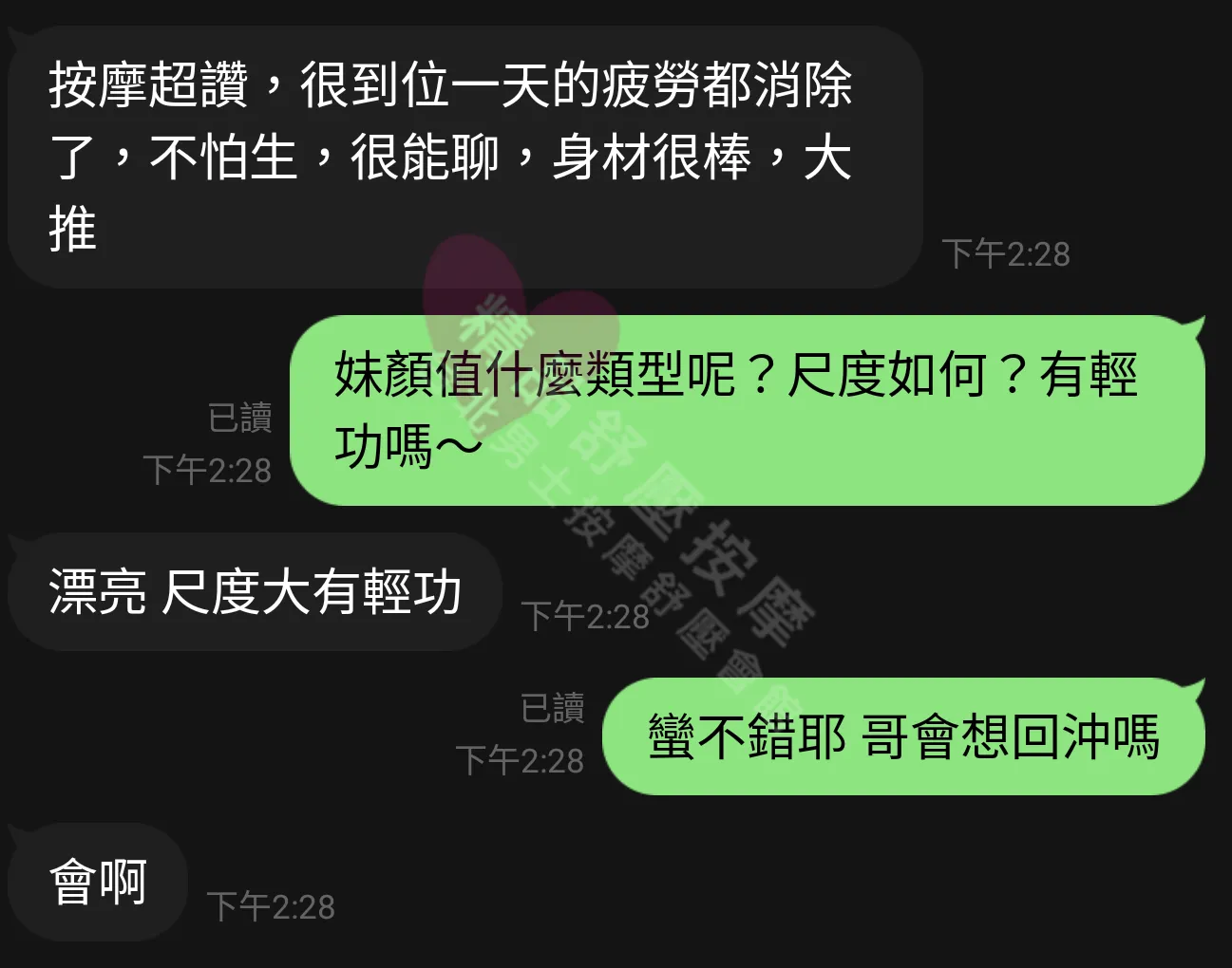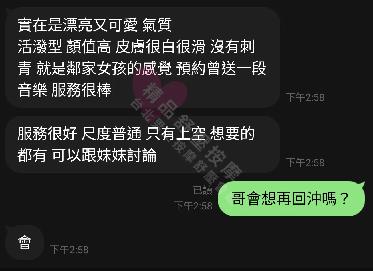 美容師都很有禮貌,先幫你背部按摩聊聊天,前戲會開始調情輕功,再來就是重點部位的加強。如果預算,也可以跟美容師聊聊加值服務,放心問都有機會。精品舒壓期待每位客人每次來舒壓都有個Happy Ending!