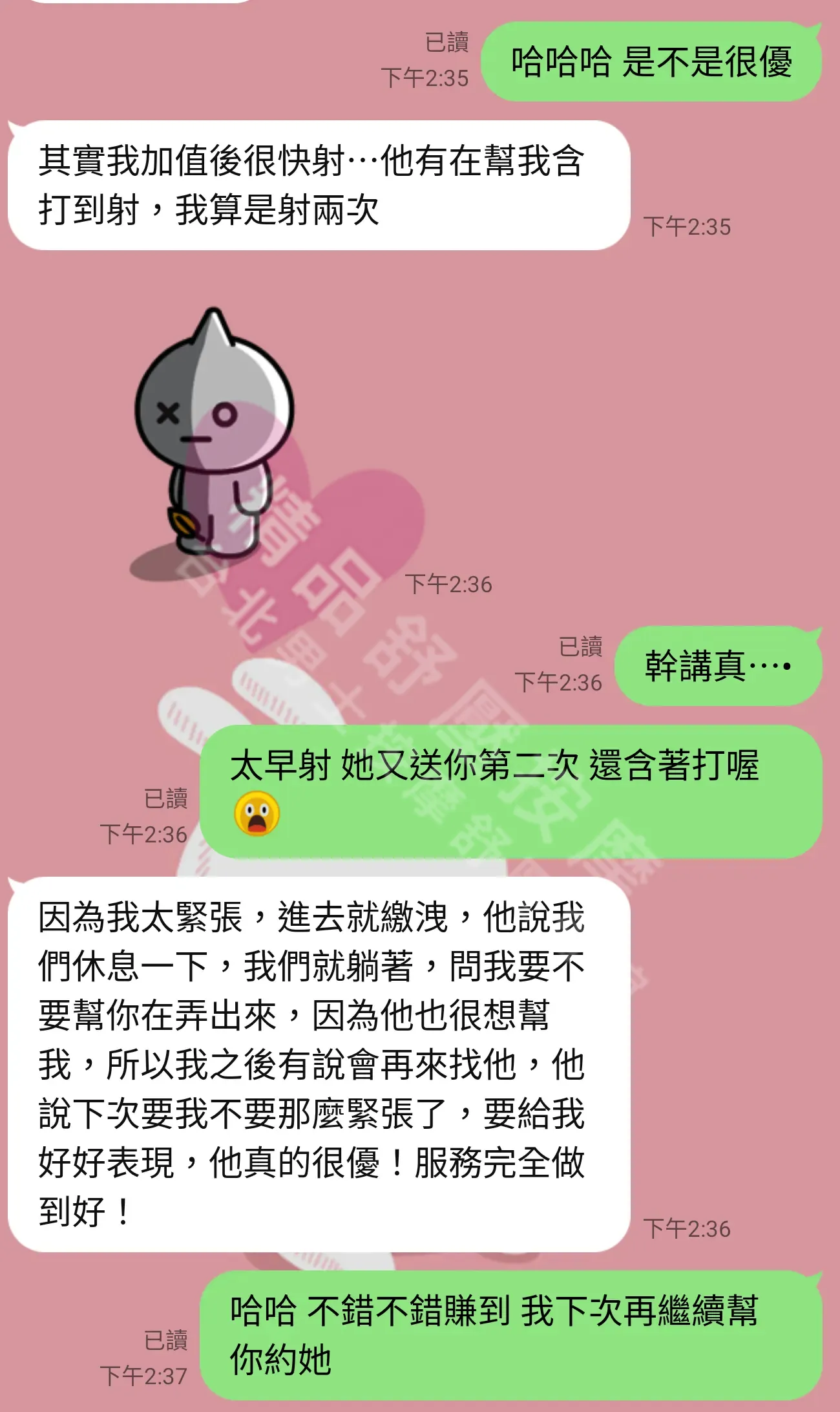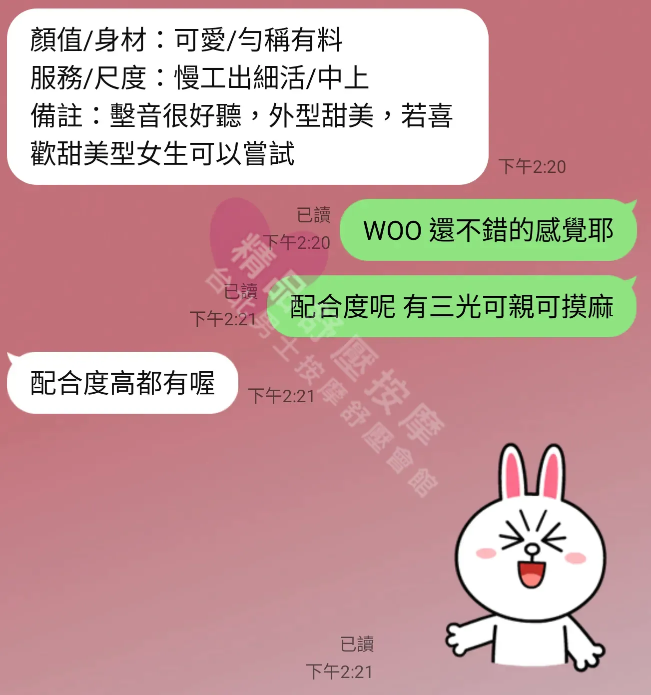 美容師都很有禮貌,先幫你背部按摩聊聊天,前戲會開始調情輕功,再來就是重點部位的加強。如果預算,也可以跟美容師聊聊加值服務,放心問都有機會。精品舒壓期待每位客人每次來舒壓都有個Happy Ending!