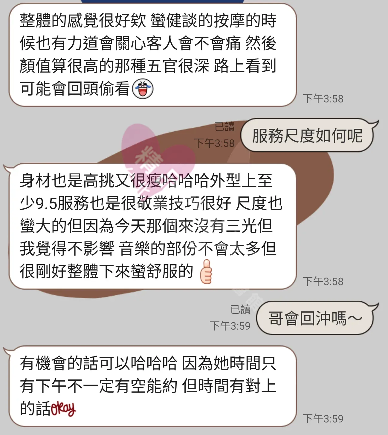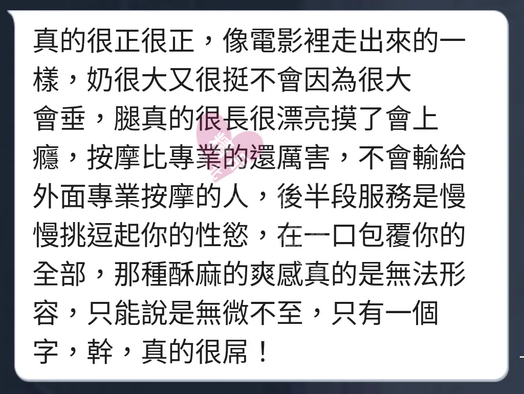 美容師都很有禮貌,先幫你背部按摩聊聊天,前戲會開始調情輕功,再來就是重點部位的加強。如果預算,也可以跟美容師聊聊加值服務,放心問都有機會。精品舒壓期待每位客人每次來舒壓都有個Happy Ending!