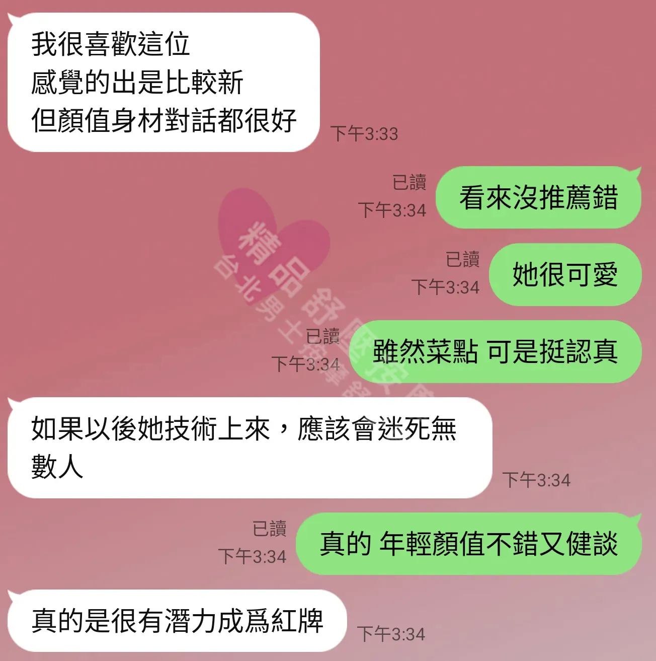 提前跟幹部預約,提出自己對美容師的要求,例如是大奶、長腿又或是小隻馬等等,通常幹部都會盡可能滿在你的要求,還可以選擇想要怎麼玩,是否可以加值更多的服務等等,這些都能通過幹部來提前預約實現。