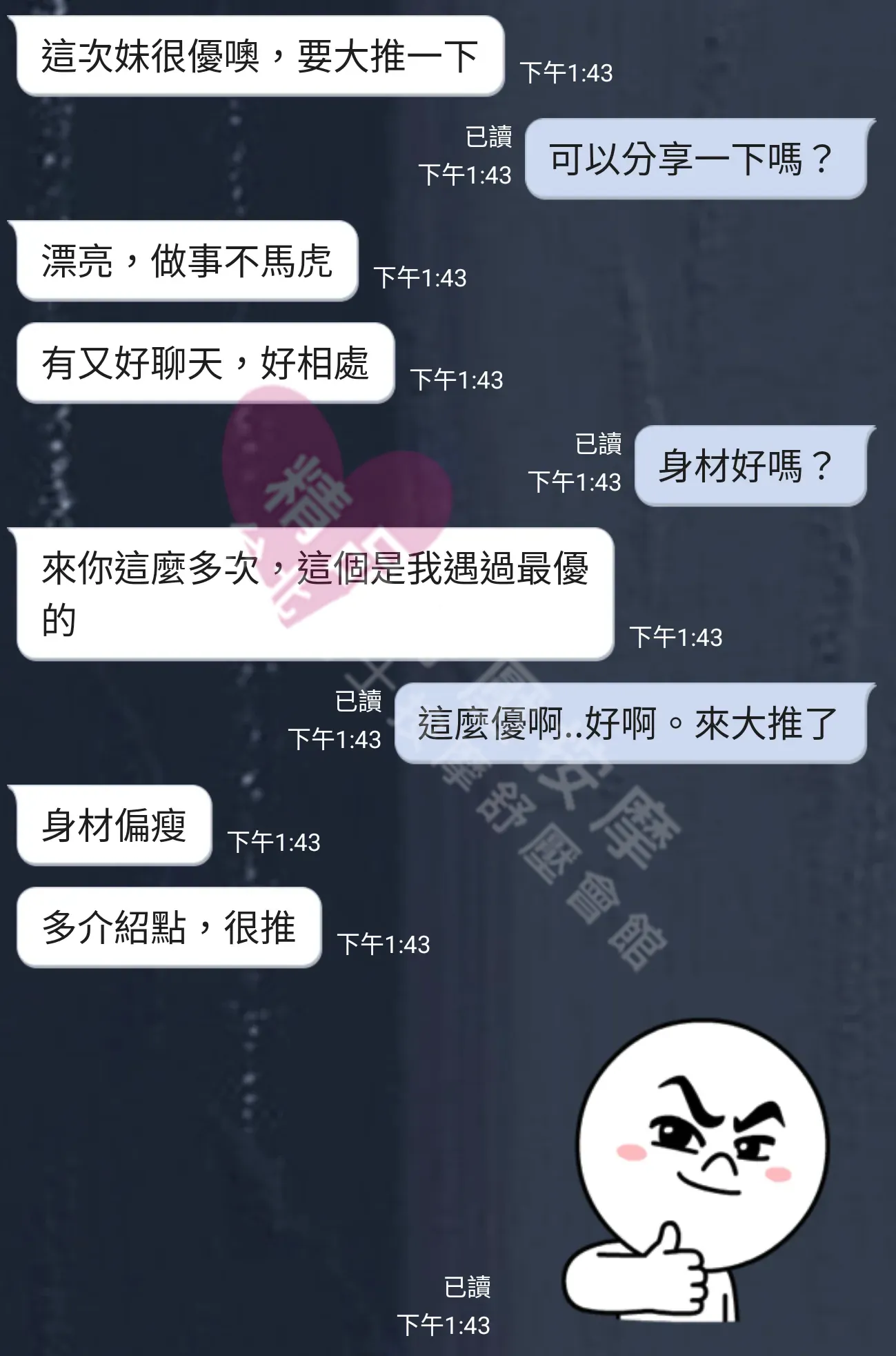 美容師都很有禮貌,先幫你背部按摩聊聊天,前戲會開始調情輕功,再來就是重點部位的加強。如果預算,也可以跟美容師聊聊加值服務,放心問都有機會。精品舒壓期待每位客人每次來舒壓都有個Happy Ending!