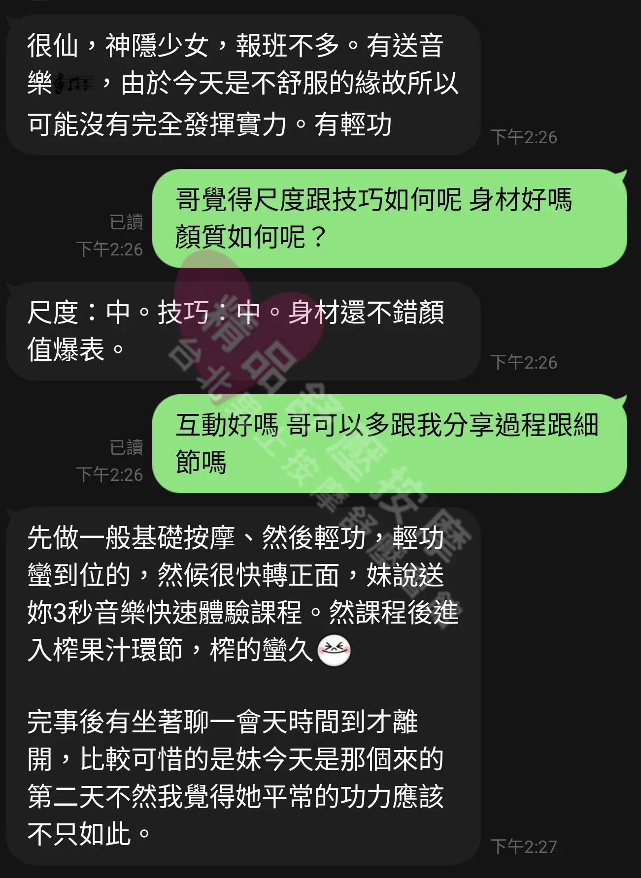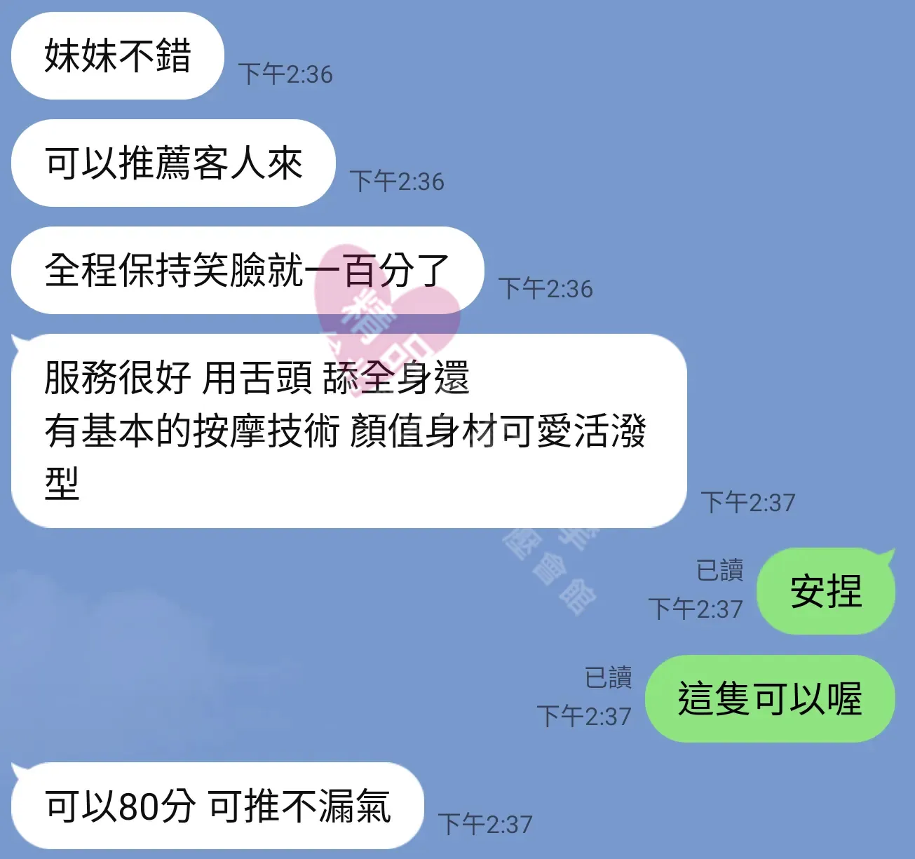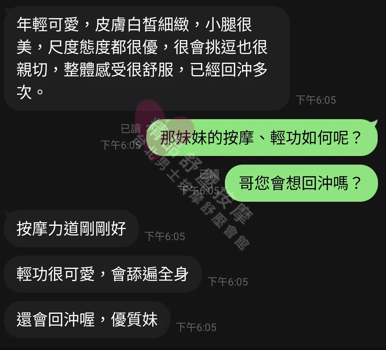 美容師都很有禮貌,先幫你背部按摩聊聊天,前戲會開始調情輕功,再來就是重點部位的加強。如果預算,也可以跟美容師聊聊加值服務,放心問都有機會。精品舒壓期待每位客人每次來舒壓都有個Happy Ending!