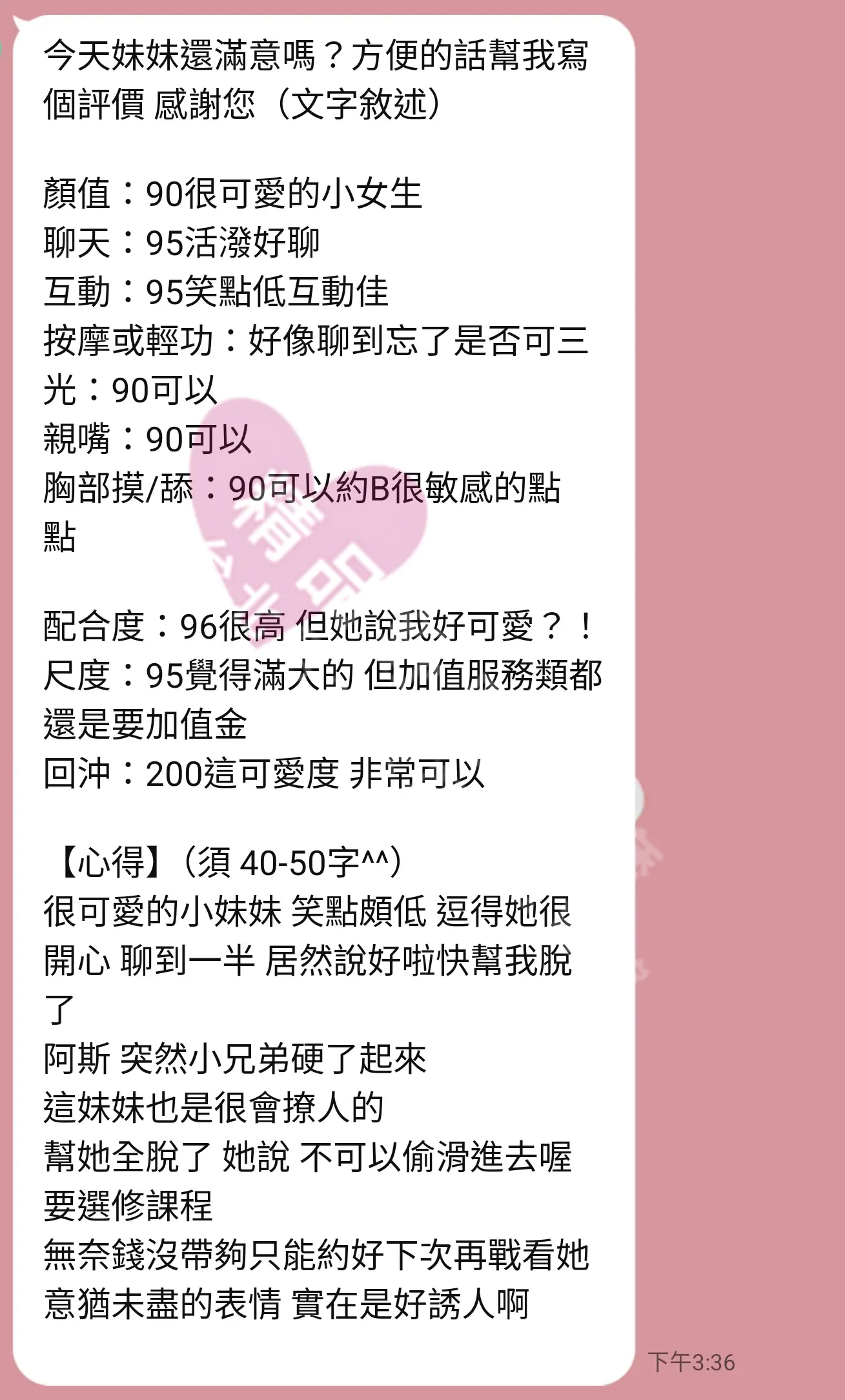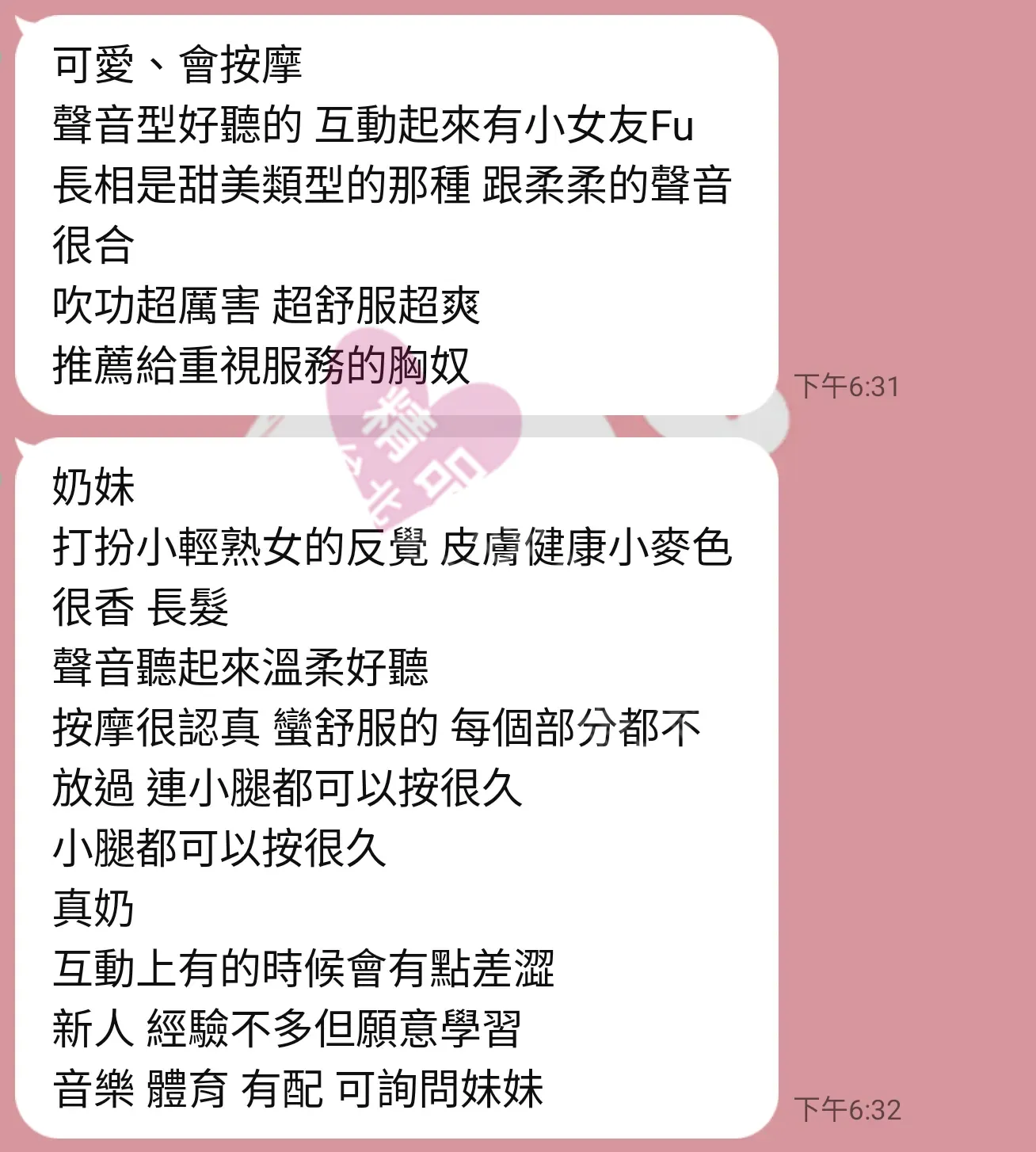 美容師都很有禮貌,先幫你背部按摩聊聊天,前戲會開始調情輕功,再來就是重點部位的加強。如果預算,也可以跟美容師聊聊加值服務,放心問都有機會。精品舒壓期待每位客人每次來舒壓都有個Happy Ending!