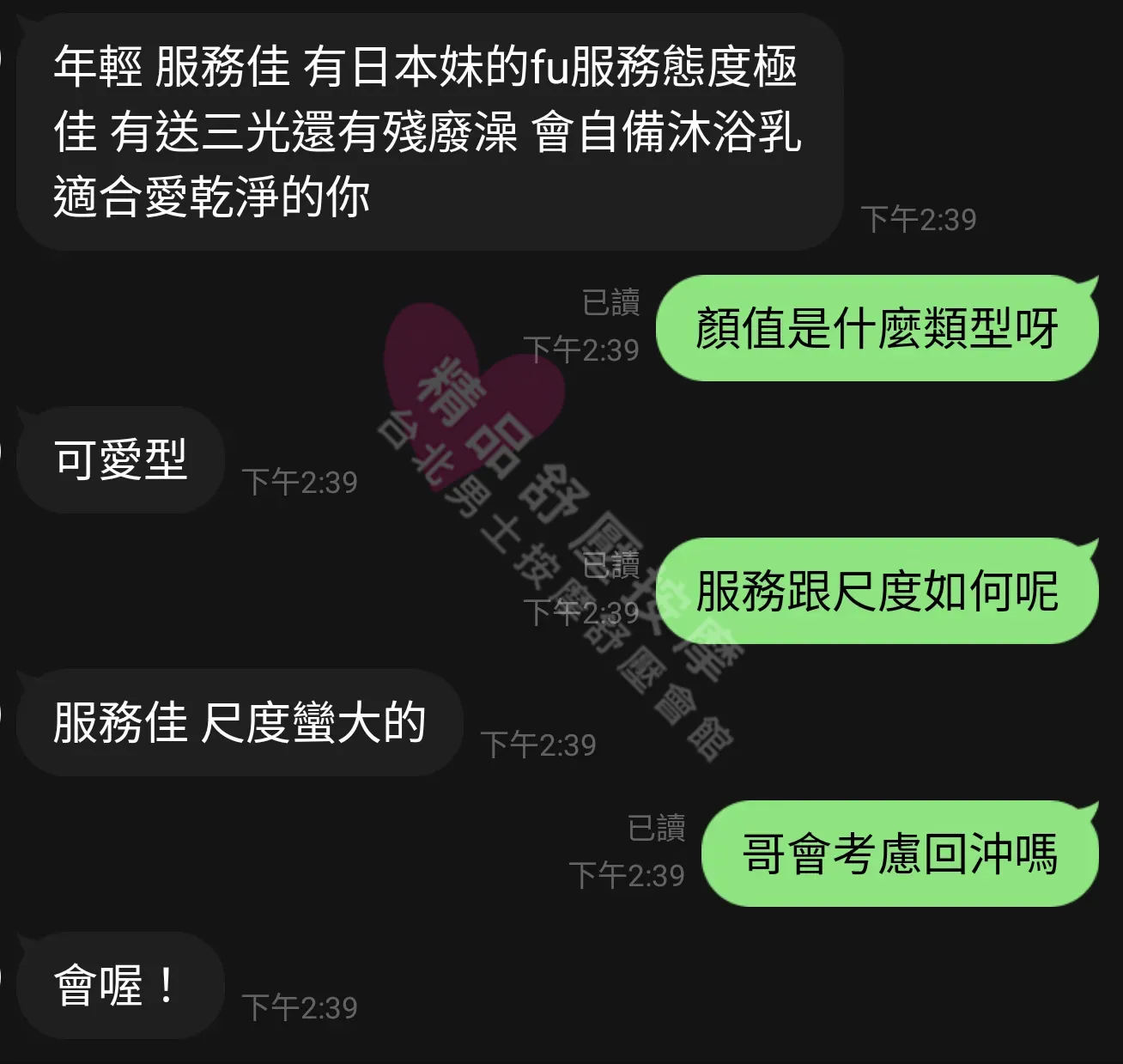 美容師都很有禮貌,先幫你背部按摩聊聊天,前戲會開始調情輕功,再來就是重點部位的加強。如果預算,也可以跟美容師聊聊加值服務,放心問都有機會。精品舒壓期待每位客人每次來舒壓都有個Happy Ending!