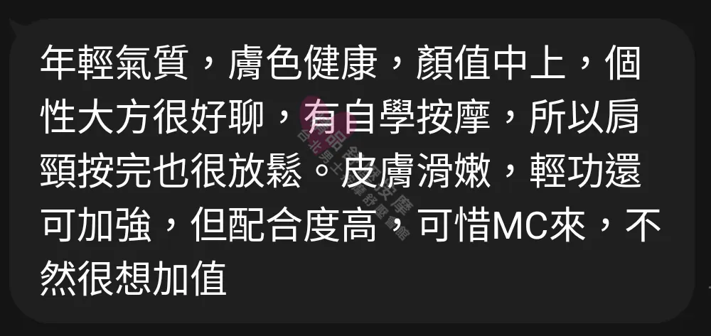 美容師都很有禮貌,先幫你背部按摩聊聊天,前戲會開始調情輕功,再來就是重點部位的加強。如果預算,也可以跟美容師聊聊加值服務,放心問都有機會。精品舒壓期待每位客人每次來舒壓都有個Happy Ending!