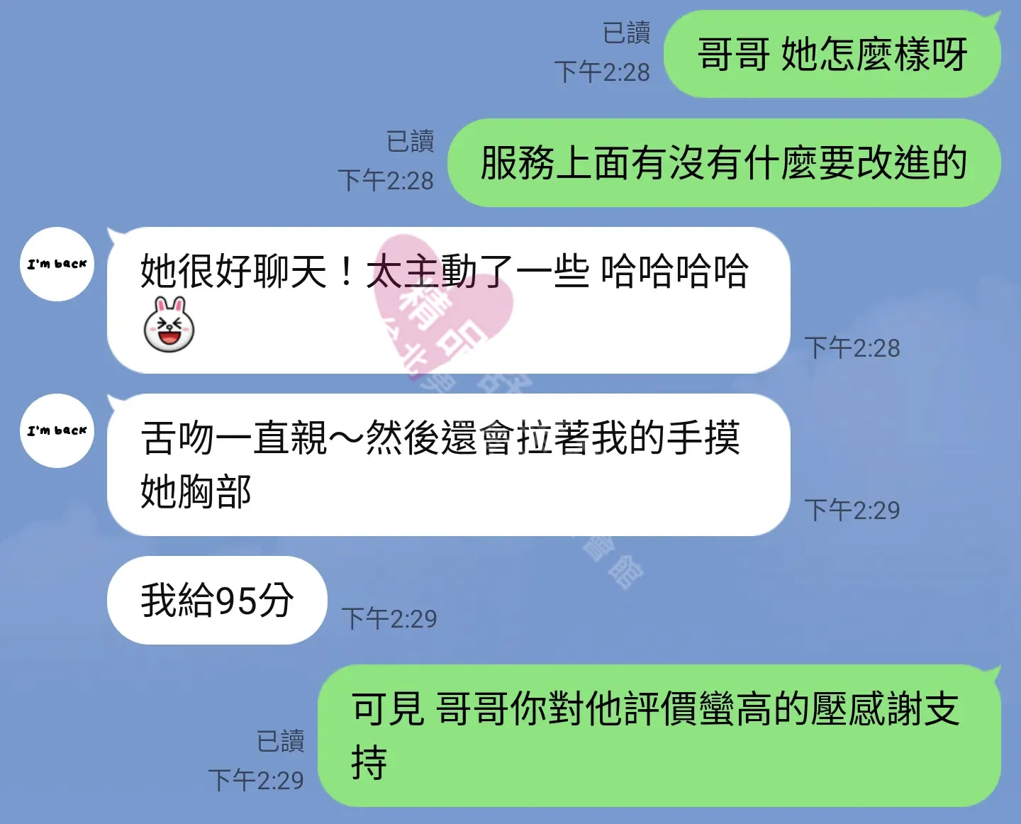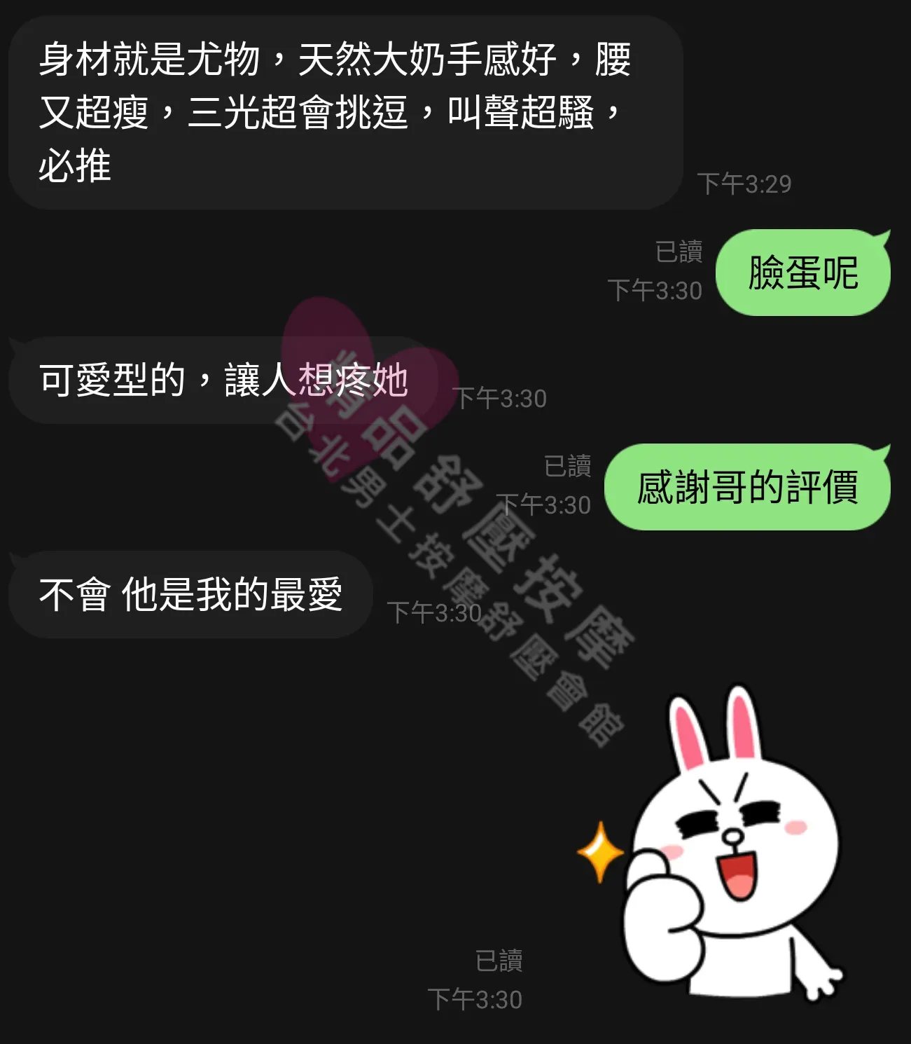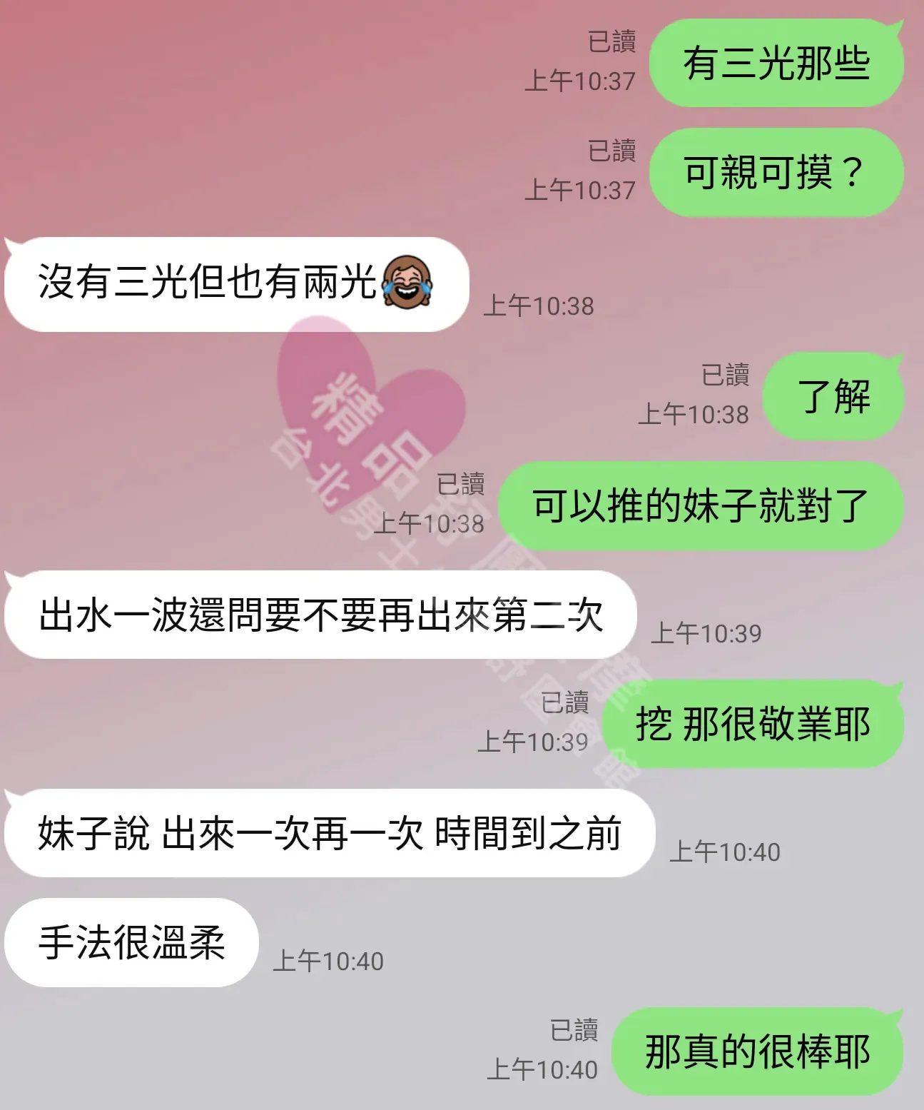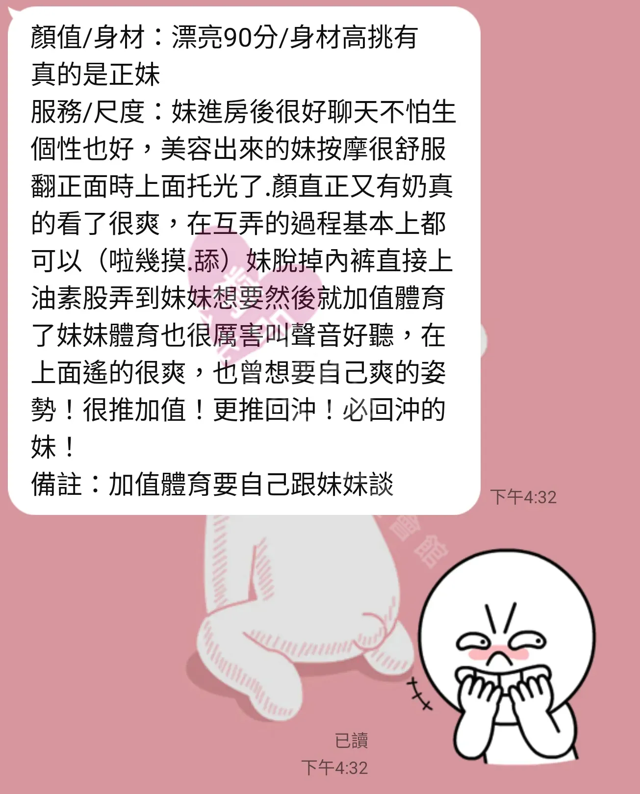 美容師都很有禮貌,先幫你背部按摩聊聊天,前戲會開始調情輕功,再來就是重點部位的加強。如果預算,也可以跟美容師聊聊加值服務,放心問都有機會。精品舒壓期待每位客人每次來舒壓都有個Happy Ending!