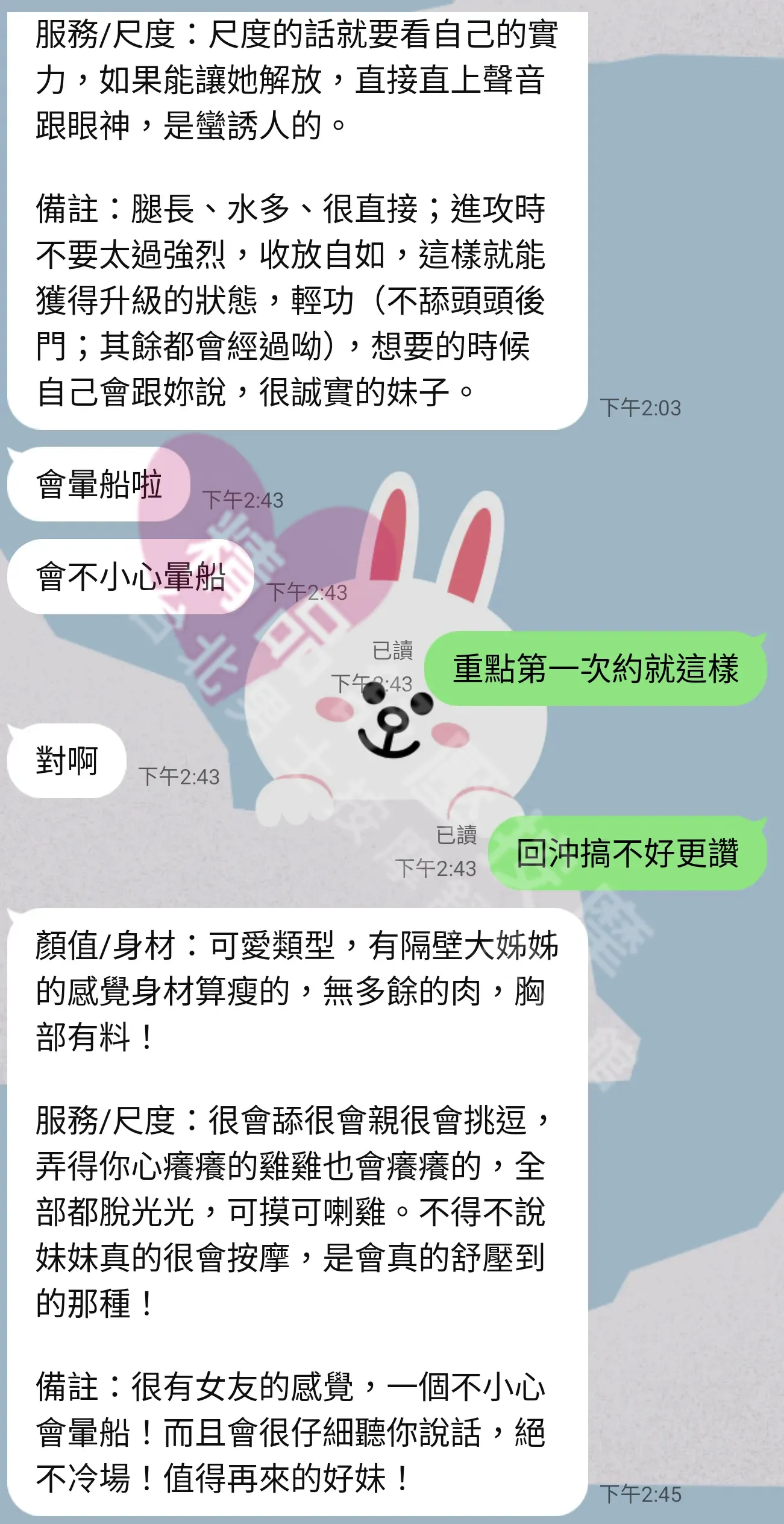 美容師都很有禮貌,先幫你背部按摩聊聊天,前戲會開始調情輕功,再來就是重點部位的加強。如果預算,也可以跟美容師聊聊加值服務,放心問都有機會。精品舒壓期待每位客人每次來舒壓都有個Happy Ending!