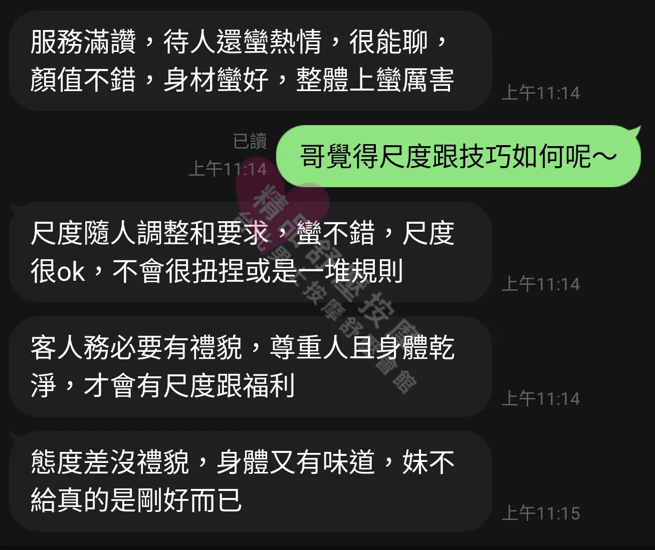 美容師都很有禮貌,先幫你背部按摩聊聊天,前戲會開始調情輕功,再來就是重點部位的加強。如果預算,也可以跟美容師聊聊加值服務,放心問都有機會。精品舒壓期待每位客人每次來舒壓都有個Happy Ending!