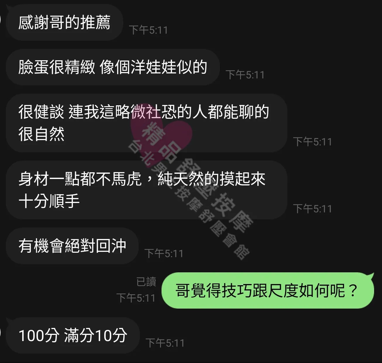 美容師都很有禮貌,先幫你背部按摩聊聊天,前戲會開始調情輕功,再來就是重點部位的加強。如果預算,也可以跟美容師聊聊加值服務,放心問都有機會。精品舒壓期待每位客人每次來舒壓都有個Happy Ending!