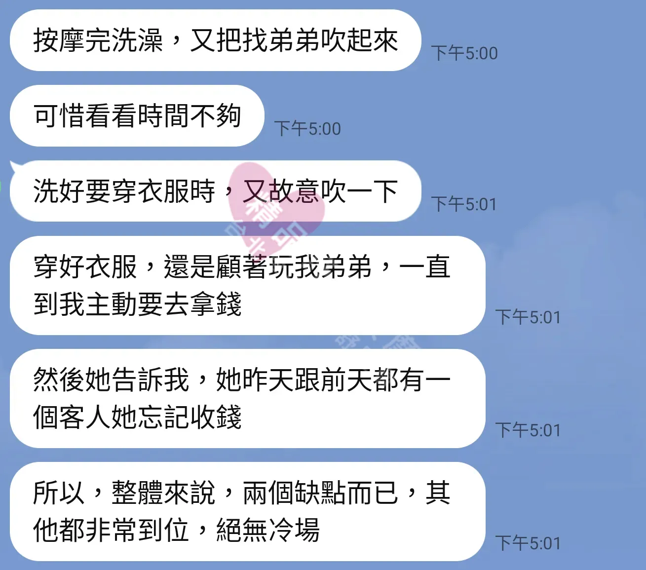 美容師都很有禮貌,先幫你背部按摩聊聊天,前戲會開始調情輕功,再來就是重點部位的加強。如果預算,也可以跟美容師聊聊加值服務,放心問都有機會。精品舒壓期待每位客人每次來舒壓都有個Happy Ending!
