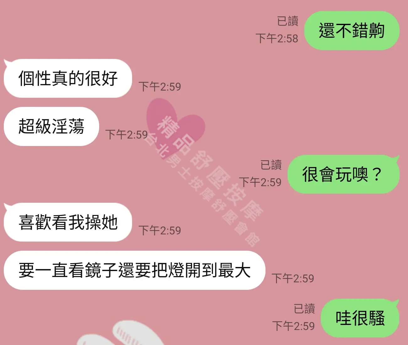 美容師都很有禮貌,先幫你背部按摩聊聊天,前戲會開始調情輕功,再來就是重點部位的加強。如果預算,也可以跟美容師聊聊加值服務,放心問都有機會。精品舒壓期待每位客人每次來舒壓都有個Happy Ending!