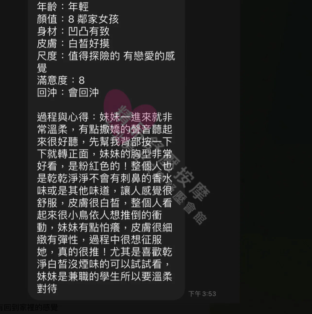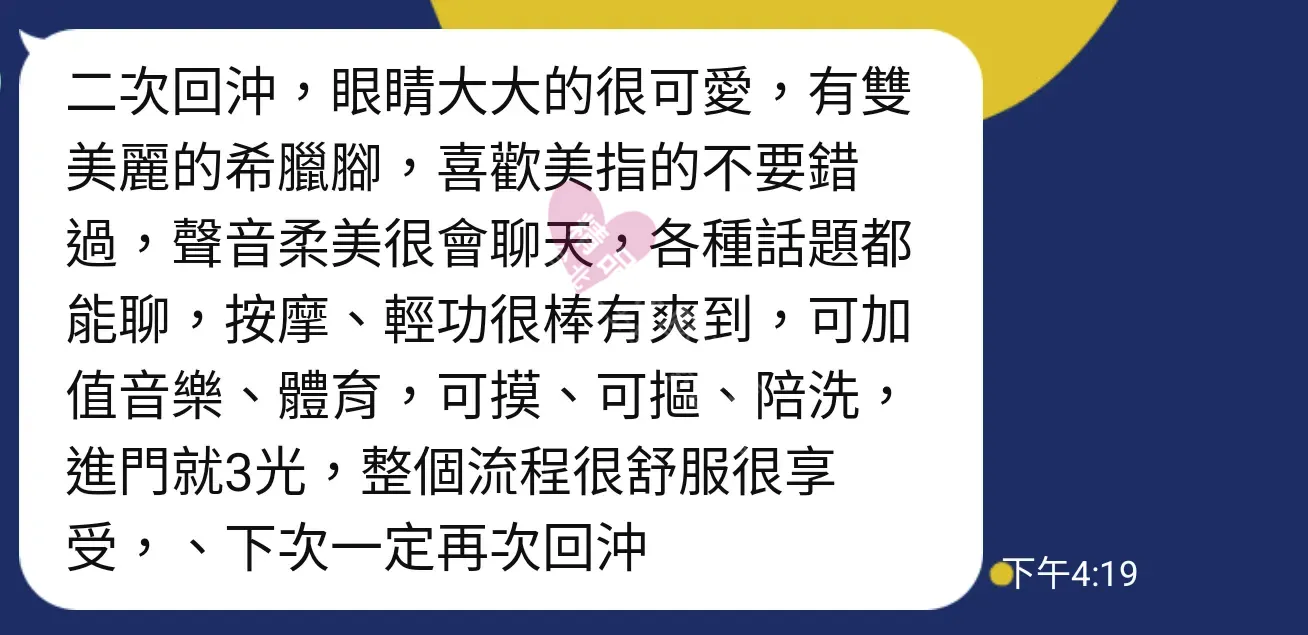 美容師都很有禮貌,先幫你背部按摩聊聊天,前戲會開始調情輕功,再來就是重點部位的加強。如果預算,也可以跟美容師聊聊加值服務,放心問都有機會。精品舒壓期待每位客人每次來舒壓都有個Happy Ending!