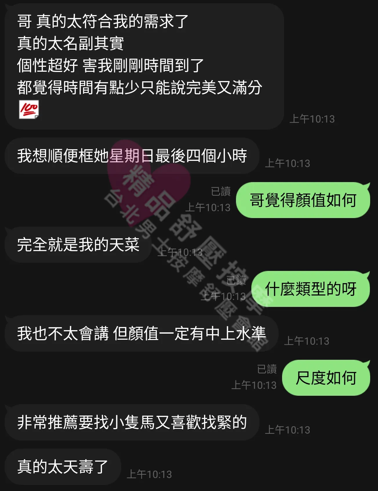 美容師都很有禮貌,先幫你背部按摩聊聊天,前戲會開始調情輕功,再來就是重點部位的加強。如果預算,也可以跟美容師聊聊加值服務,放心問都有機會。精品舒壓期待每位客人每次來舒壓都有個Happy Ending!