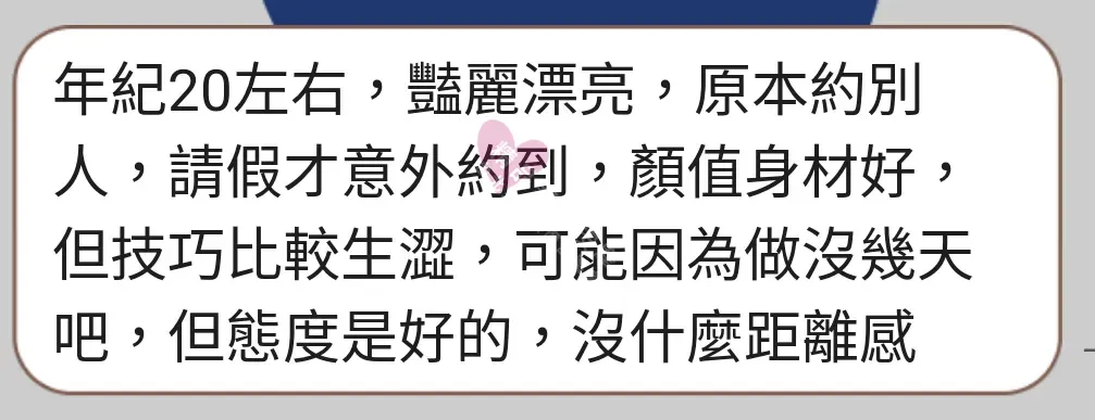 美容師都很有禮貌,先幫你背部按摩聊聊天,前戲會開始調情輕功,再來就是重點部位的加強。如果預算,也可以跟美容師聊聊加值服務,放心問都有機會。精品舒壓期待每位客人每次來舒壓都有個Happy Ending!