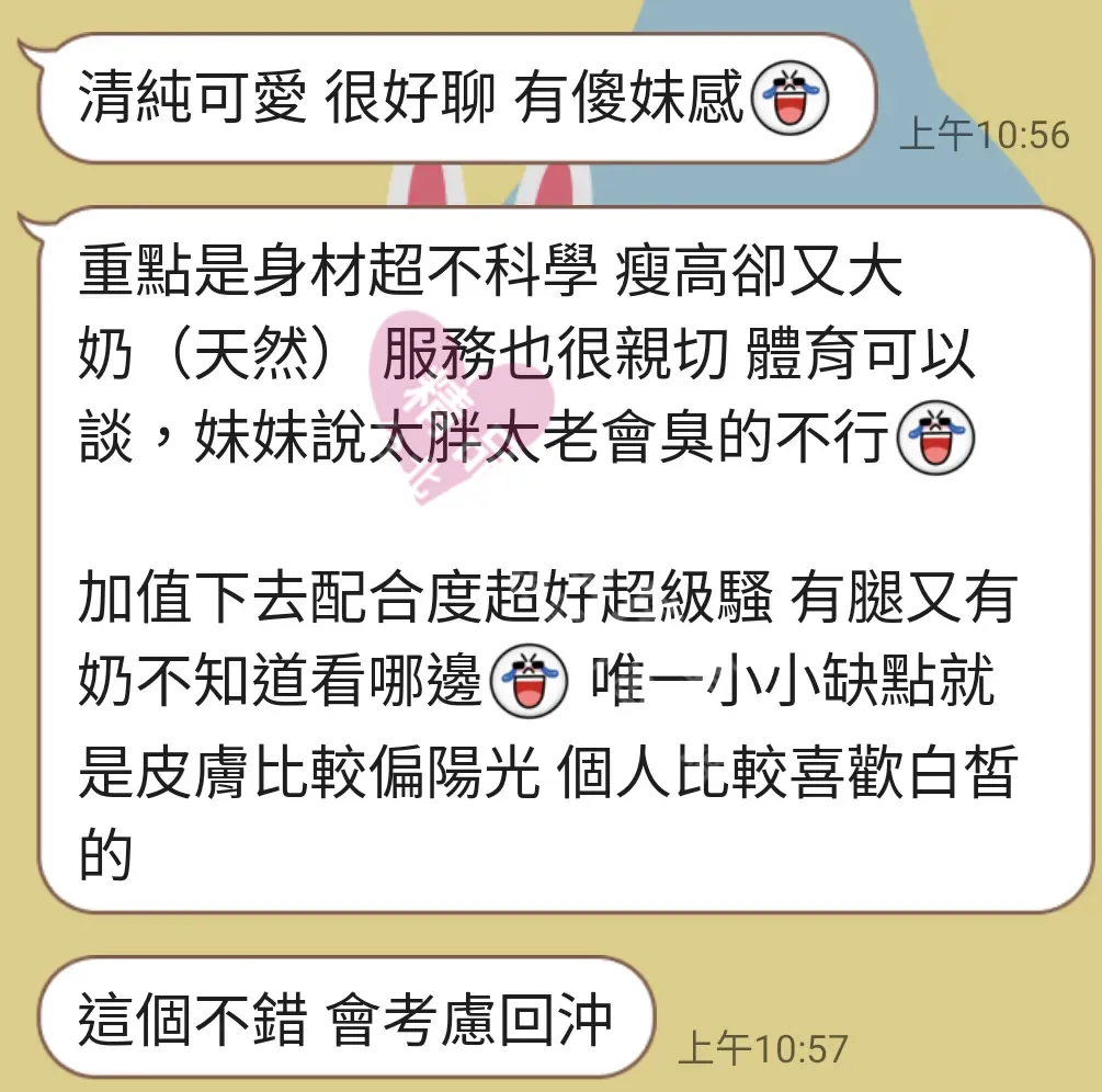 提前跟幹部預約,提出自己對美容師的要求,例如是大奶、長腿又或是小隻馬等等,通常幹部都會盡可能滿在你的要求,還可以選擇想要怎麼玩,是否可以加值更多的服務等等,這些都能通過幹部來提前預約實現。