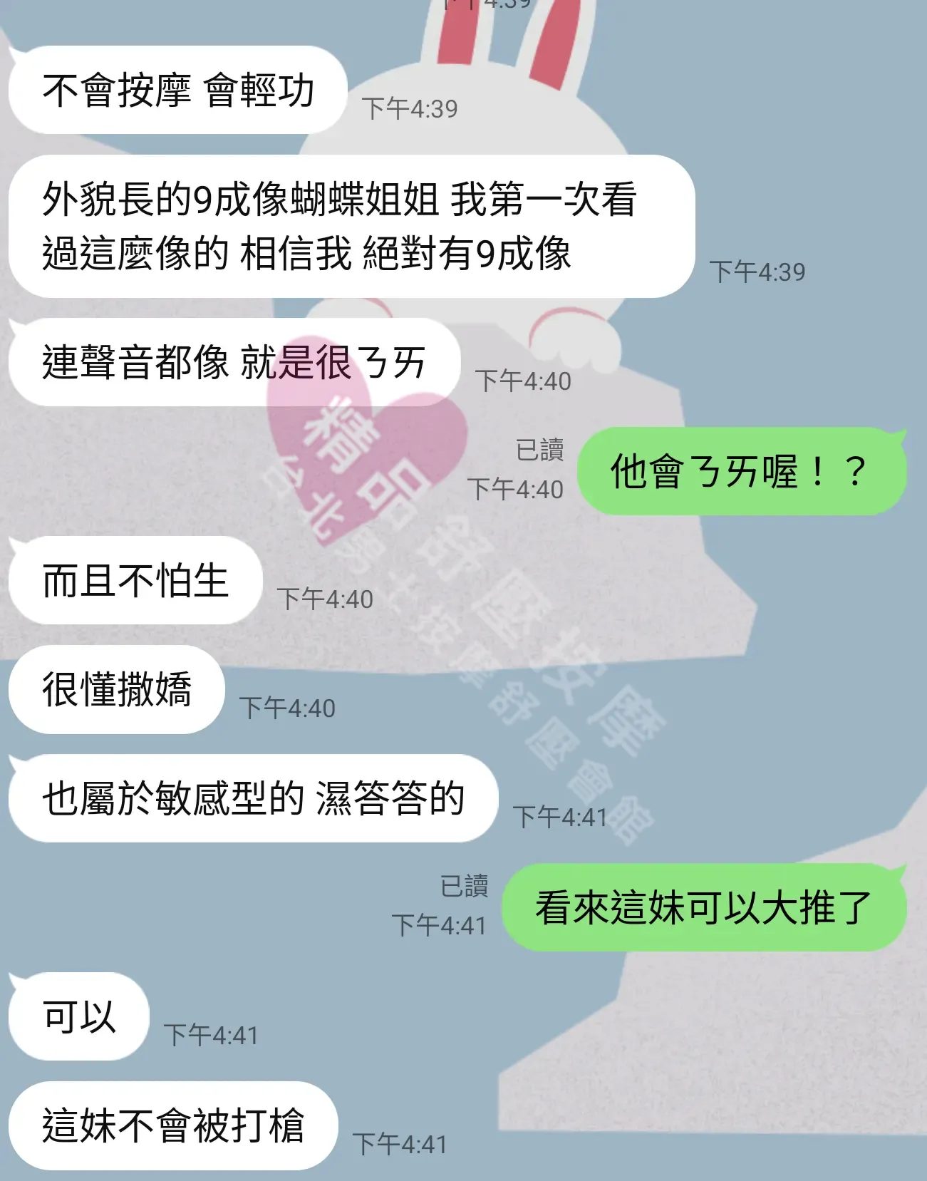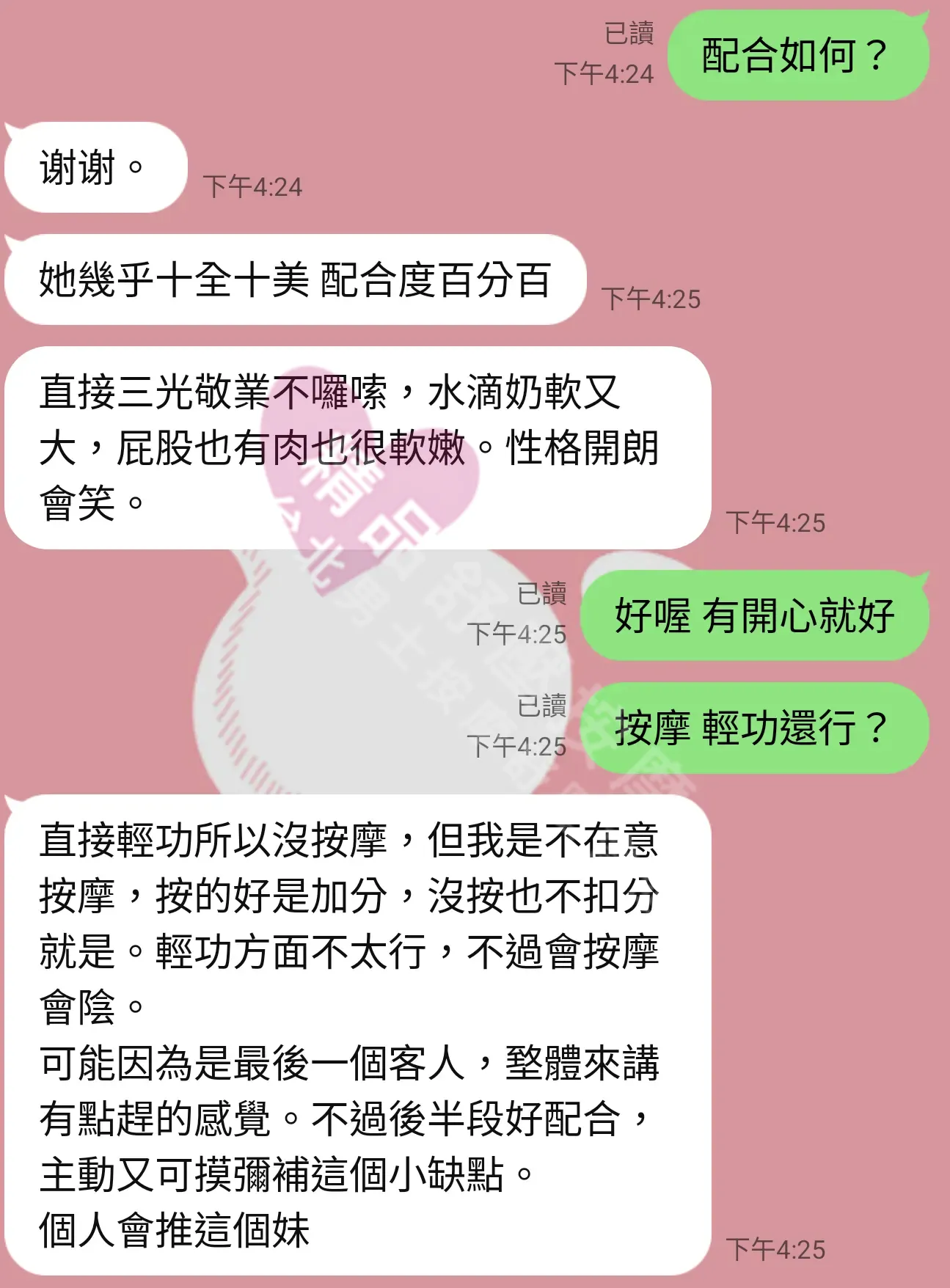 美容師都很有禮貌,先幫你背部按摩聊聊天,前戲會開始調情輕功,再來就是重點部位的加強。如果預算,也可以跟美容師聊聊加值服務,放心問都有機會。精品舒壓期待每位客人每次來舒壓都有個Happy Ending!