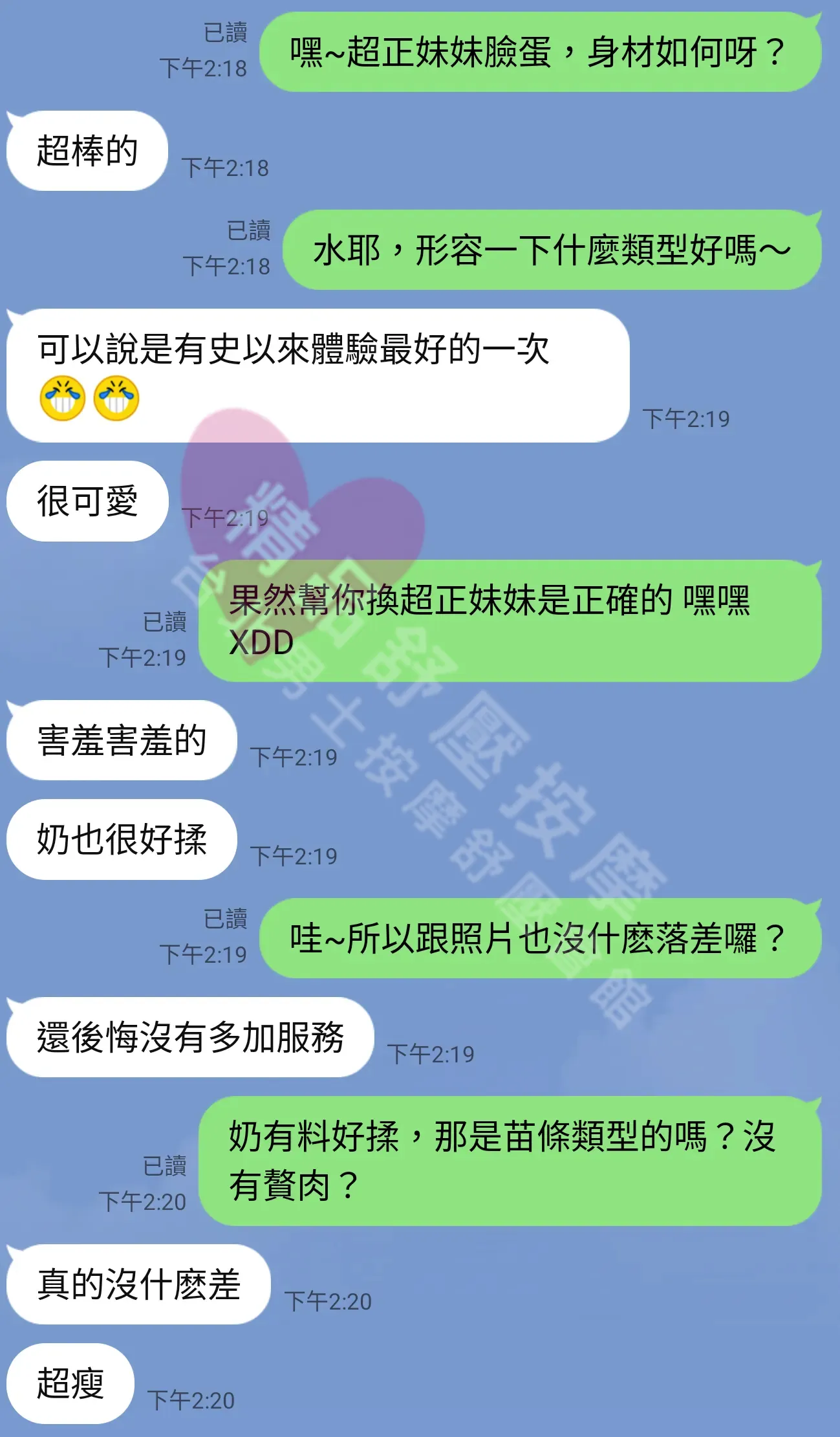 美容師都很有禮貌,先幫你背部按摩聊聊天,前戲會開始調情輕功,再來就是重點部位的加強。如果預算,也可以跟美容師聊聊加值服務,放心問都有機會。精品舒壓期待每位客人每次來舒壓都有個Happy Ending!