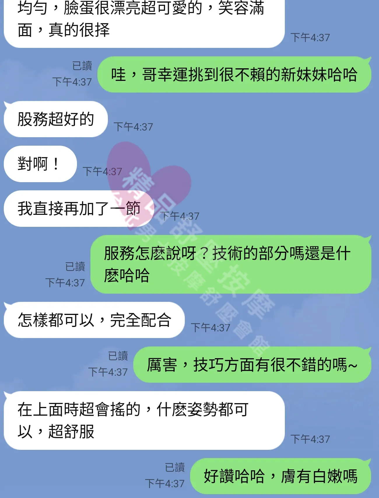 美容師都很有禮貌,先幫你背部按摩聊聊天,前戲會開始調情輕功,再來就是重點部位的加強。如果預算,也可以跟美容師聊聊加值服務,放心問都有機會。精品舒壓期待每位客人每次來舒壓都有個Happy Ending!