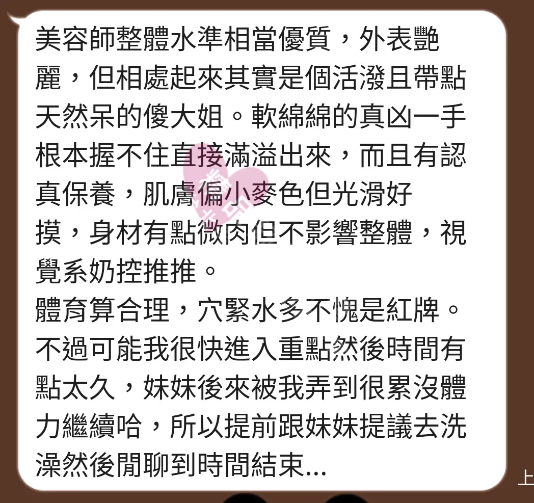 提前跟幹部預約,提出自己對美容師的要求,例如是大奶、長腿又或是小隻馬等等,通常幹部都會盡可能滿在你的要求,還可以選擇想要怎麼玩,是否可以加值更多的服務等等,這些都能通過幹部來提前預約實現。