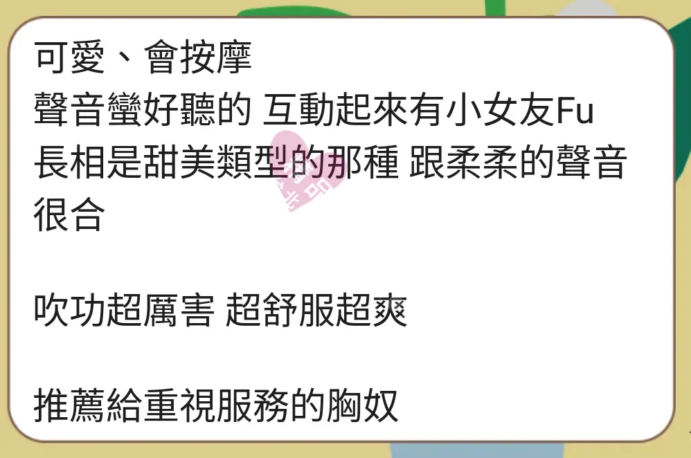 提前跟幹部預約,提出自己對美容師的要求,例如是大奶、長腿又或是小隻馬等等,通常幹部都會盡可能滿在你的要求,還可以選擇想要怎麼玩,是否可以加值更多的服務等等,這些都能通過幹部來提前預約實現。