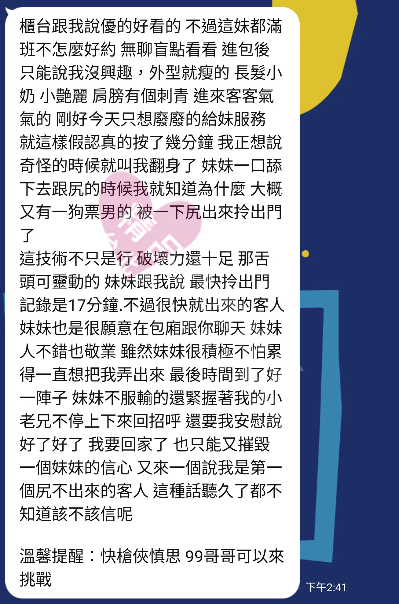 美容師都很有禮貌,先幫你背部按摩聊聊天,前戲會開始調情輕功,再來就是重點部位的加強。如果預算,也可以跟美容師聊聊加值服務,放心問都有機會。精品舒壓期待每位客人每次來舒壓都有個Happy Ending!