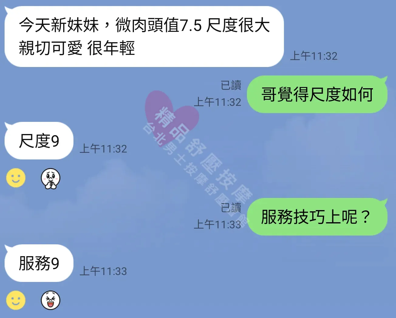 美容師都很有禮貌,先幫你背部按摩聊聊天,前戲會開始調情輕功,再來就是重點部位的加強。如果預算,也可以跟美容師聊聊加值服務,放心問都有機會。精品舒壓期待每位客人每次來舒壓都有個Happy Ending!