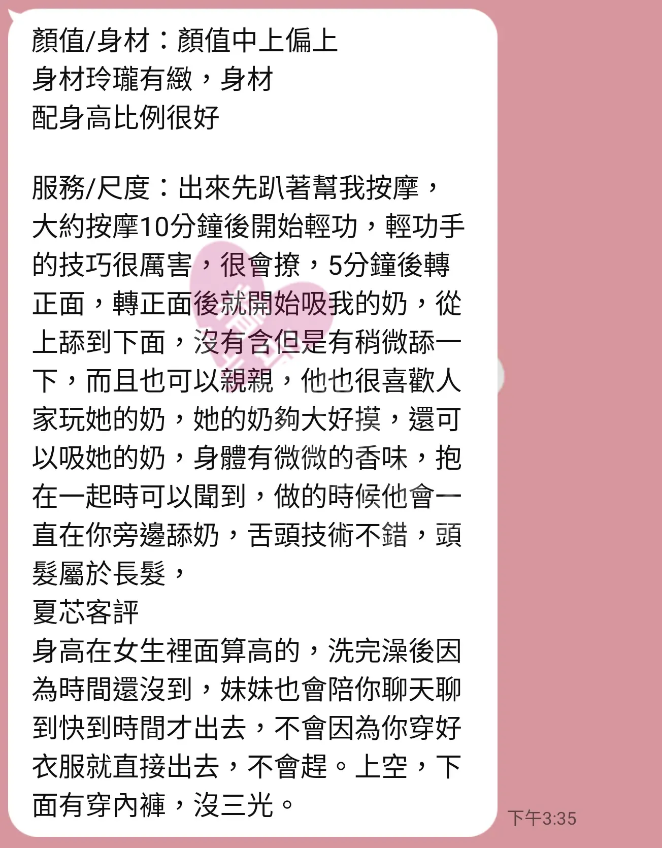 美容師都很有禮貌,先幫你背部按摩聊聊天,前戲會開始調情輕功,再來就是重點部位的加強。如果預算,也可以跟美容師聊聊加值服務,放心問都有機會。精品舒壓期待每位客人每次來舒壓都有個Happy Ending!
