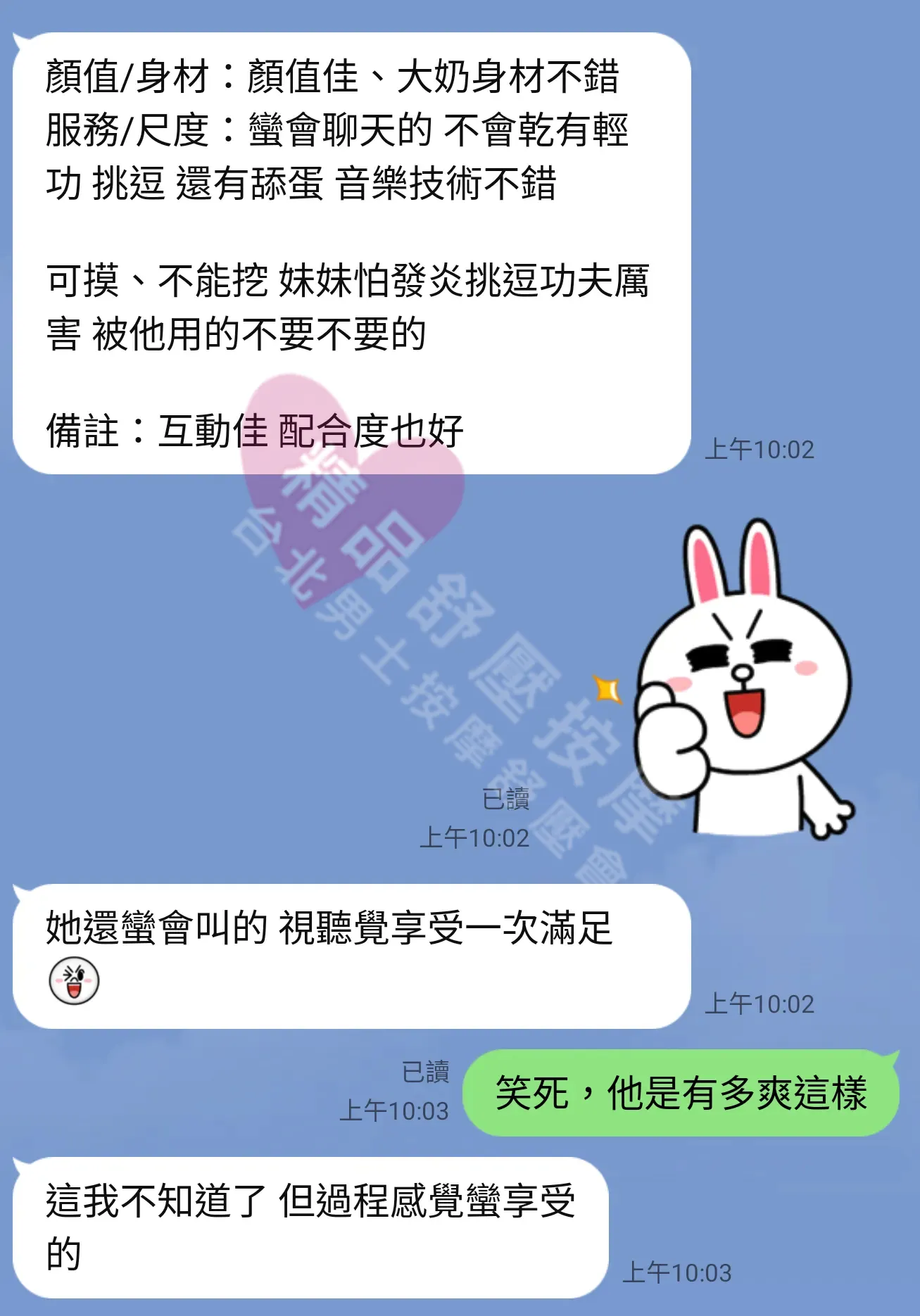 美容師都很有禮貌,先幫你背部按摩聊聊天,前戲會開始調情輕功,再來就是重點部位的加強。如果預算,也可以跟美容師聊聊加值服務,放心問都有機會。精品舒壓期待每位客人每次來舒壓都有個Happy Ending!