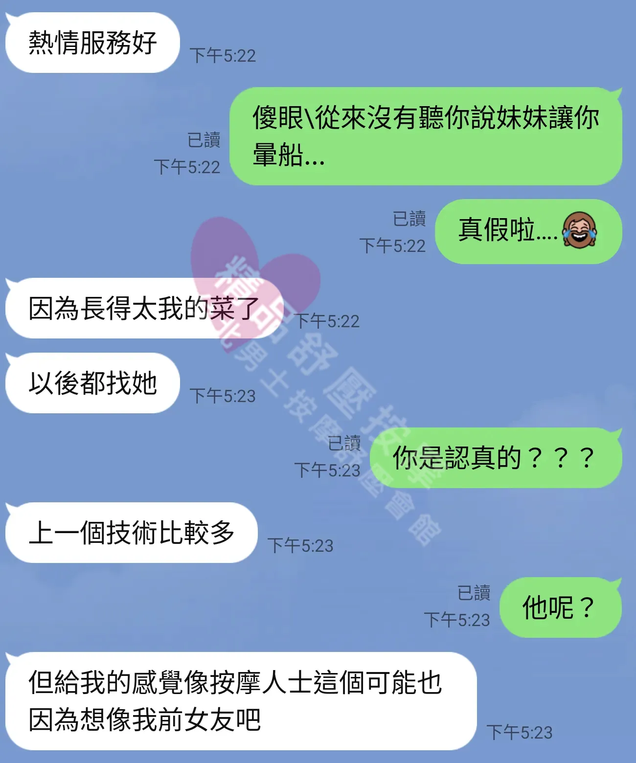 美容師都很有禮貌,先幫你背部按摩聊聊天,前戲會開始調情輕功,再來就是重點部位的加強。如果預算,也可以跟美容師聊聊加值服務,放心問都有機會。精品舒壓期待每位客人每次來舒壓都有個Happy Ending!