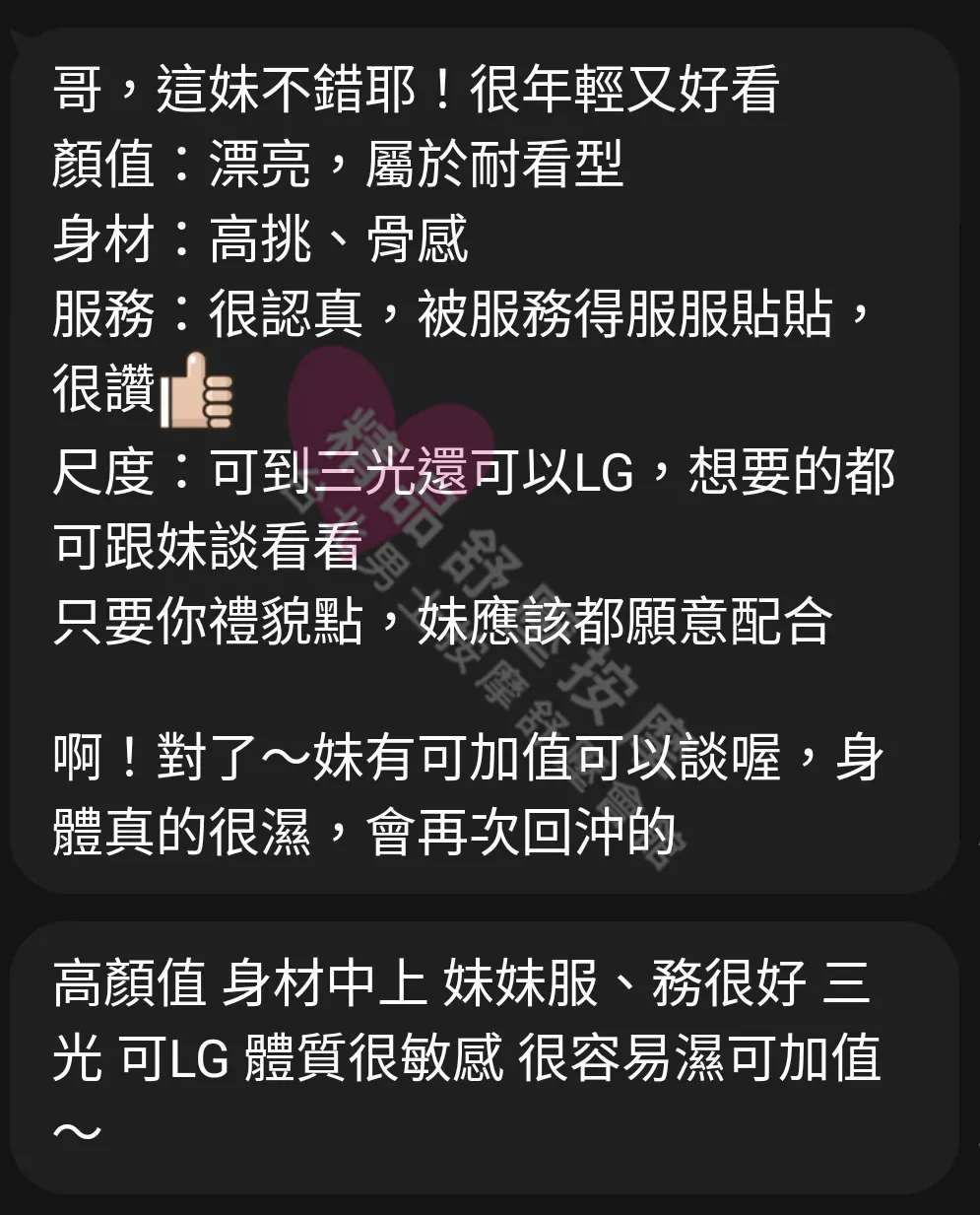美容師都很有禮貌,先幫你背部按摩聊聊天,前戲會開始調情輕功,再來就是重點部位的加強。如果預算,也可以跟美容師聊聊加值服務,放心問都有機會。精品舒壓期待每位客人每次來舒壓都有個Happy Ending!