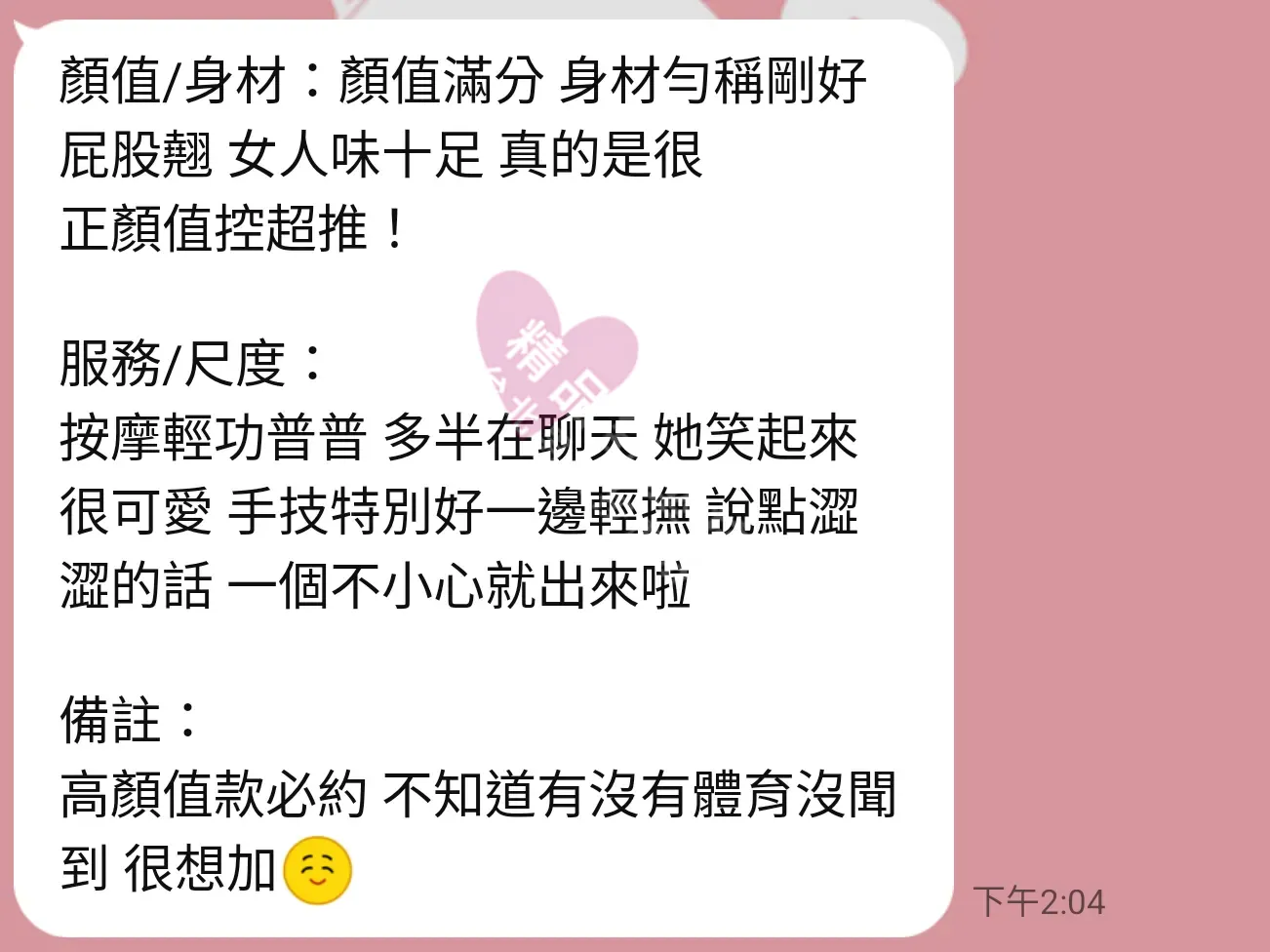 美容師都很有禮貌,先幫你背部按摩聊聊天,前戲會開始調情輕功,再來就是重點部位的加強。如果預算,也可以跟美容師聊聊加值服務,放心問都有機會。精品舒壓期待每位客人每次來舒壓都有個Happy Ending!